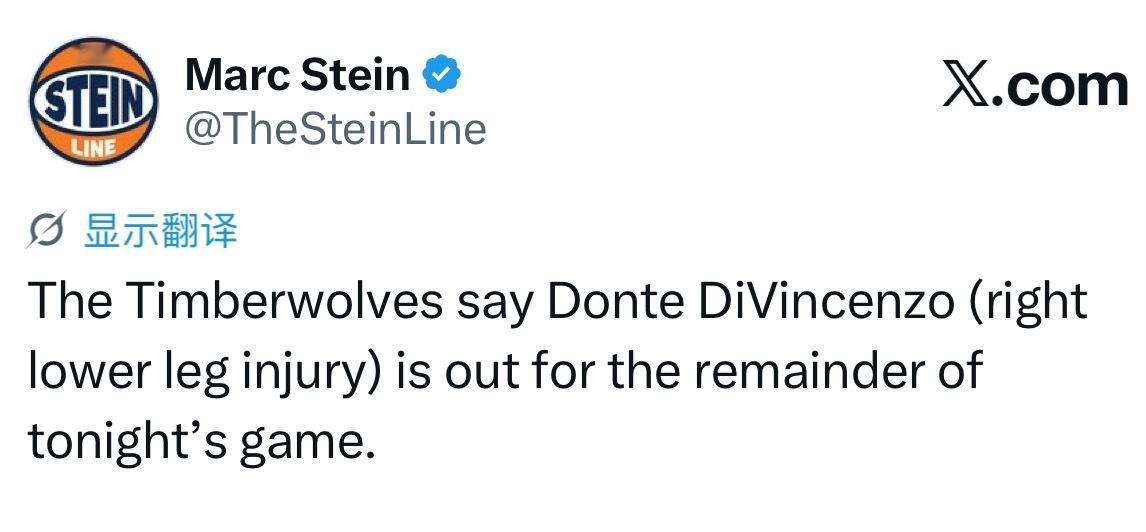 迪文大概率跟腱撕裂了,右小腿有抖动。森林狼官方:迪文右小腿受伤,退赛。掘金vs森