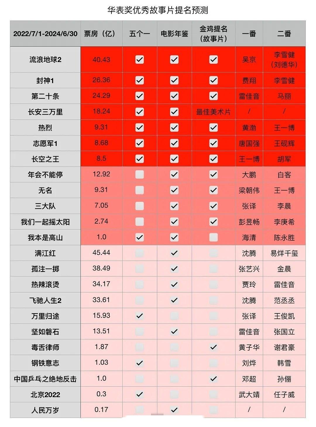 还有优秀故事片提名预测,各种拉表显示的结果都是王一博赢面太大了,而且这样赢面大的电影他有三部!