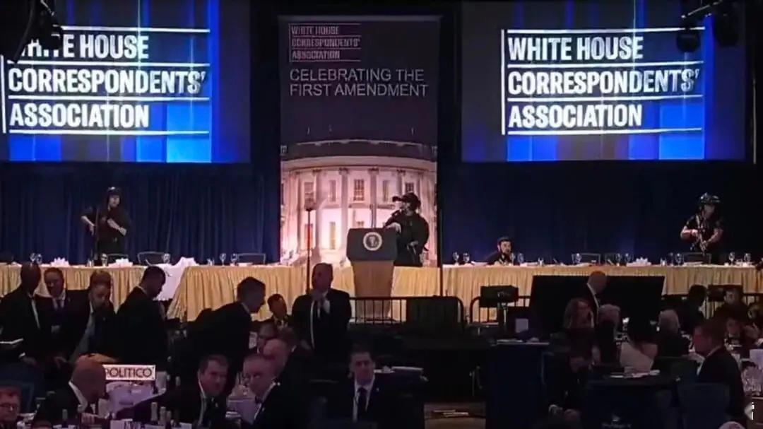 枪击风波刚刚平息、枪手被制服后,短短不到一小时,特朗普毅然重返白宫记者晚宴舞台,当众宣布演出继续。