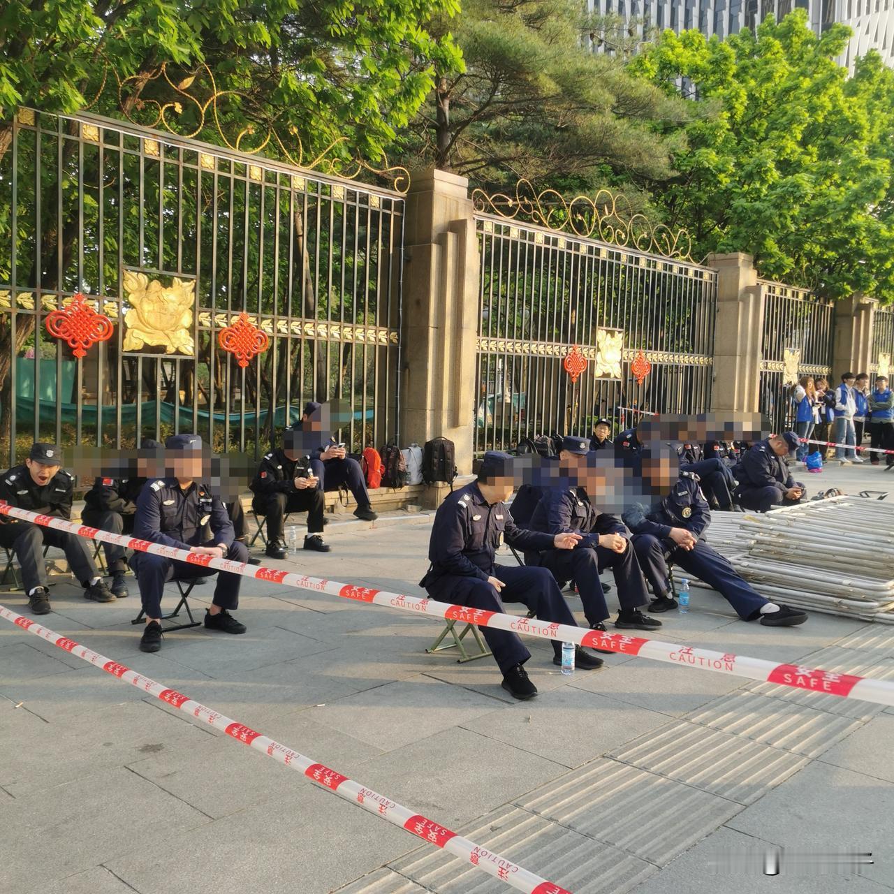 他们很辛苦,谢谢这些志愿者和安保人员!