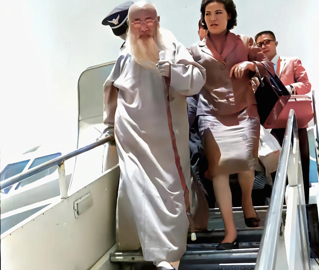 一九七〇年,年过七旬的张大千携夫人徐雯波飞抵台北,准备参加一场古画研讨会。那是他们下飞机后的一幕,被记录在照片里,至今看着仍有味道。