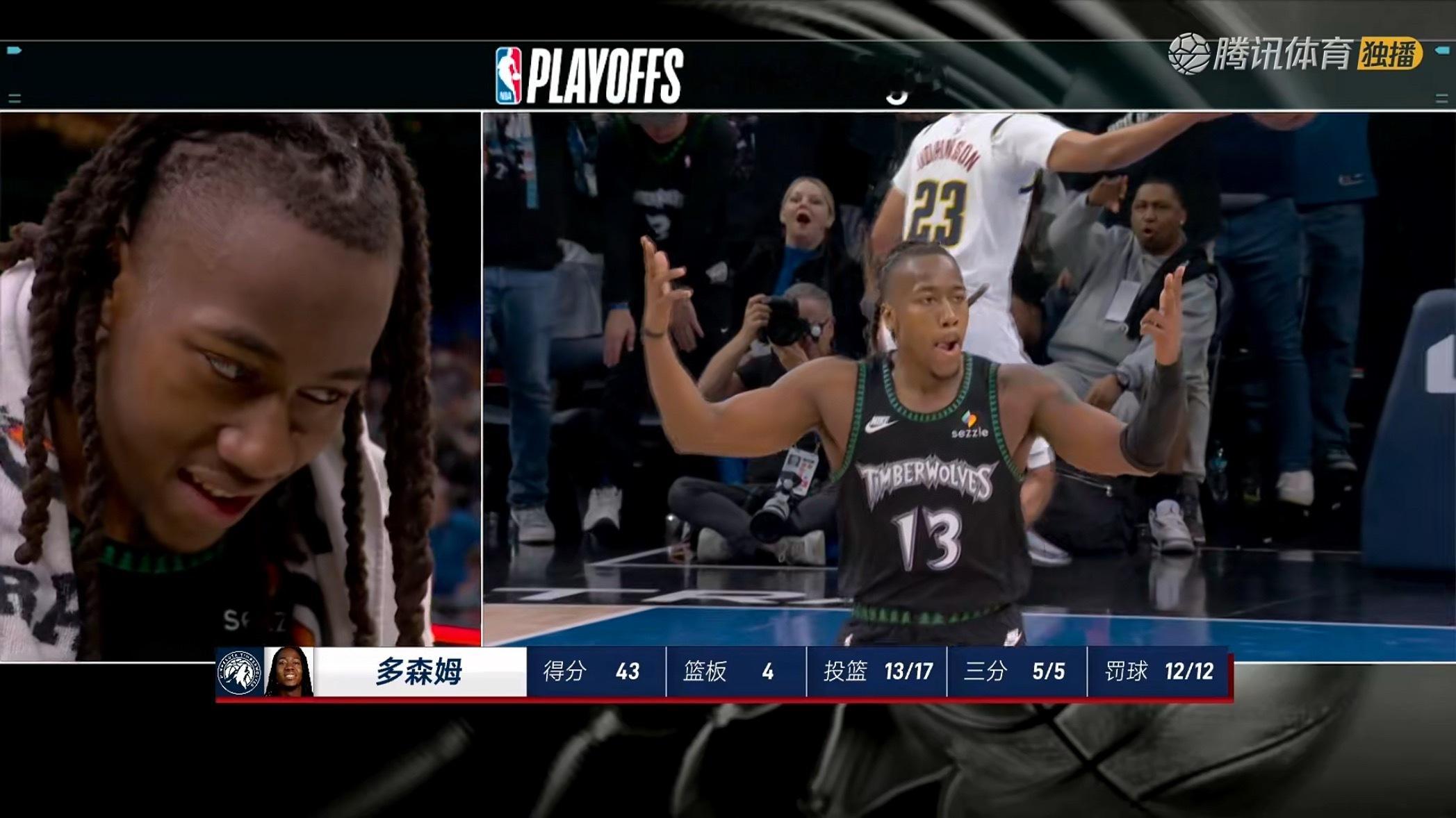 森林狼这多森姆数据太炸了一共就投丢4个球砍下40+掘金vs森林狼