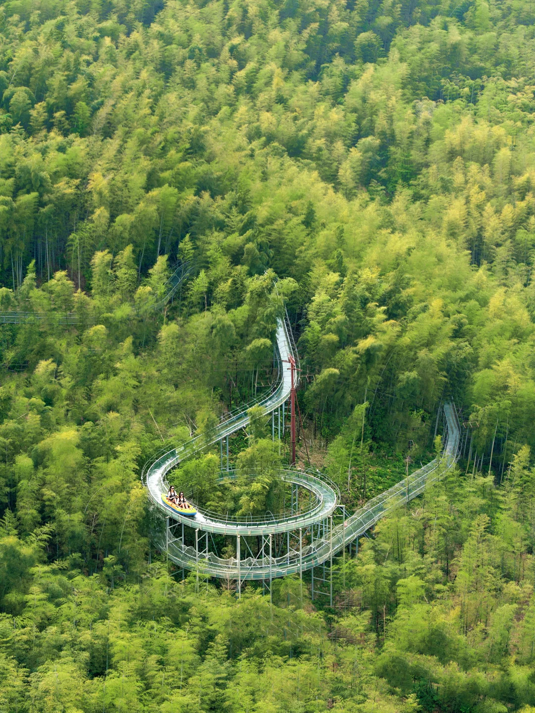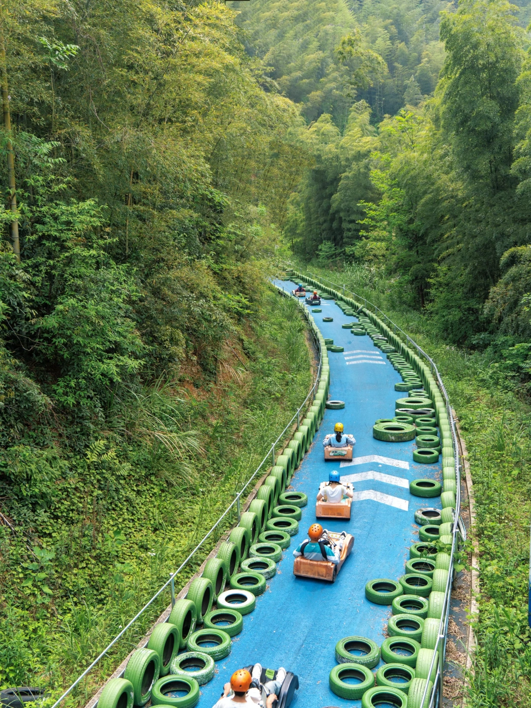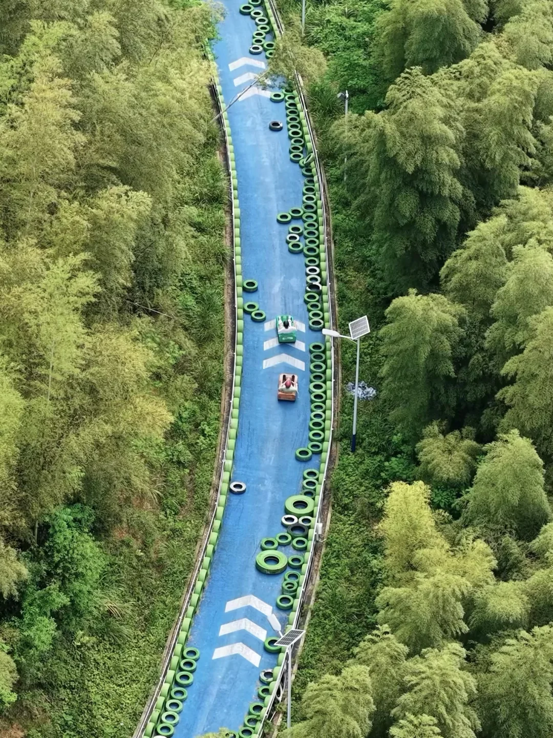 全长3km,在竹林里穿梭往下,和朋友一起往下,自己驾驶越过障碍物,太快乐了!!