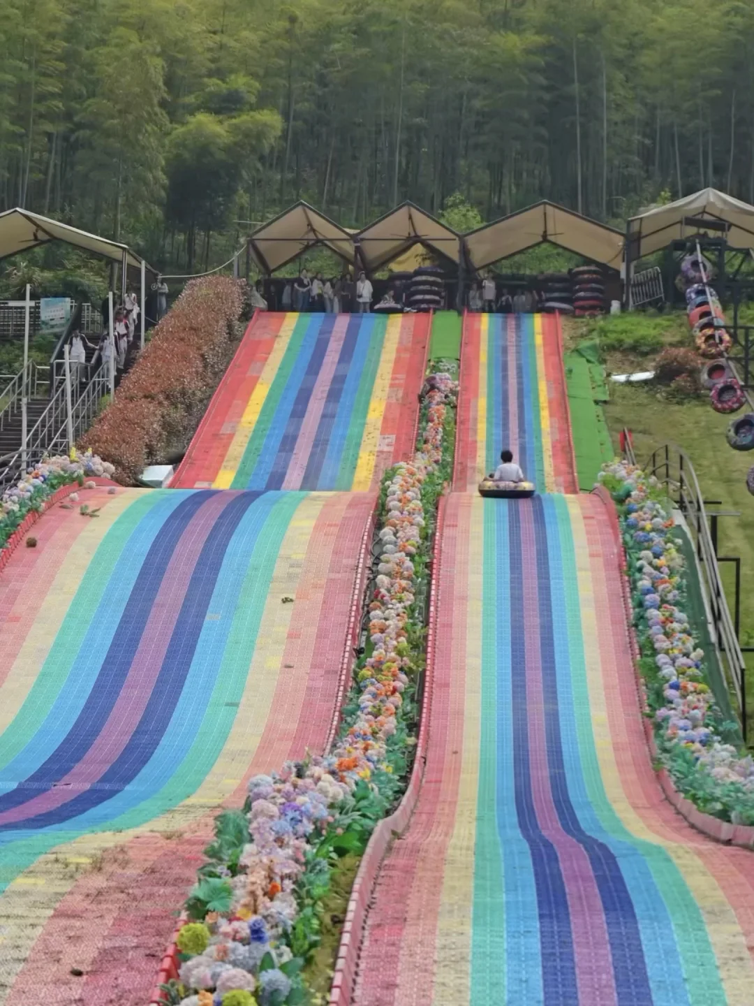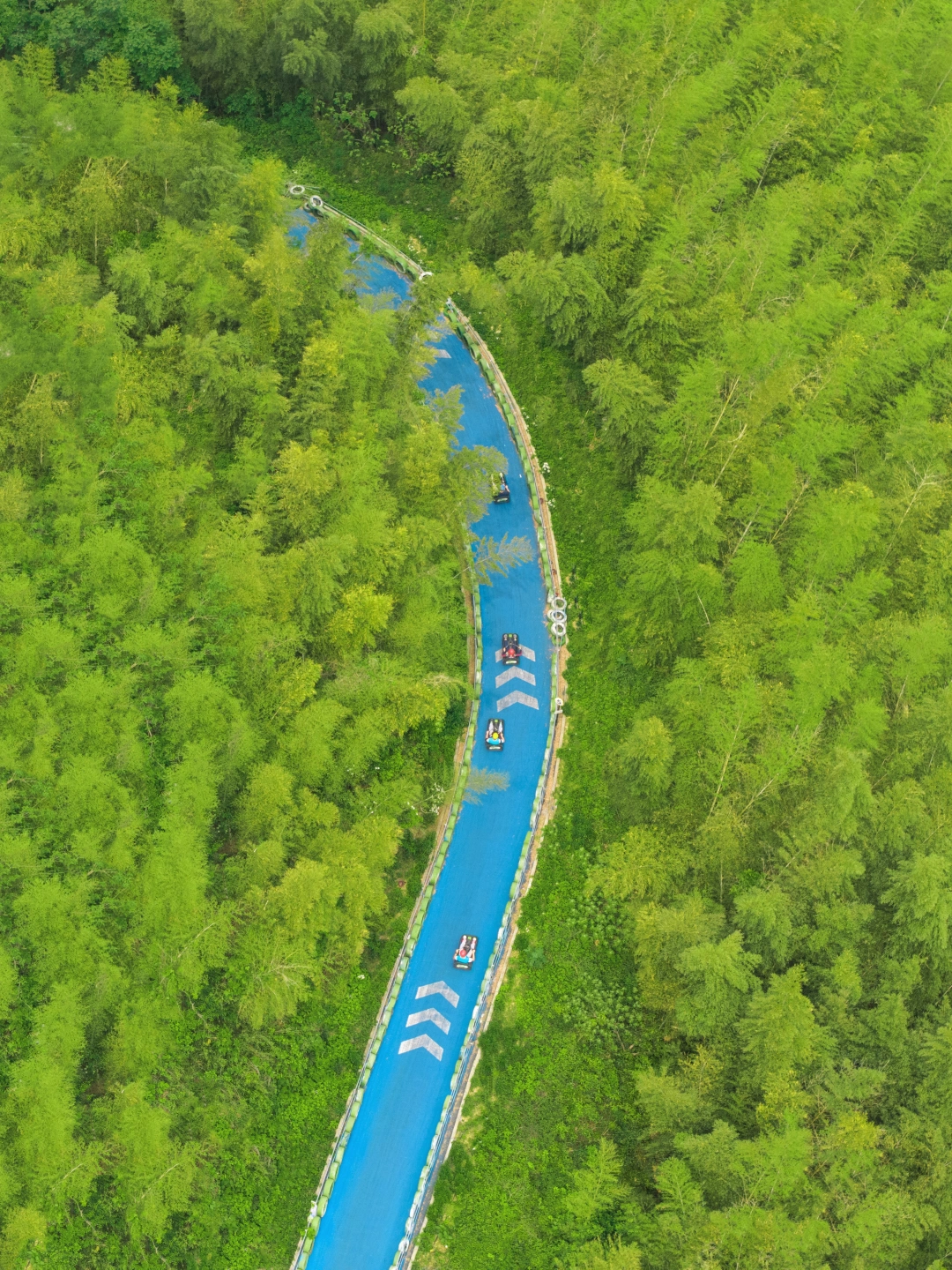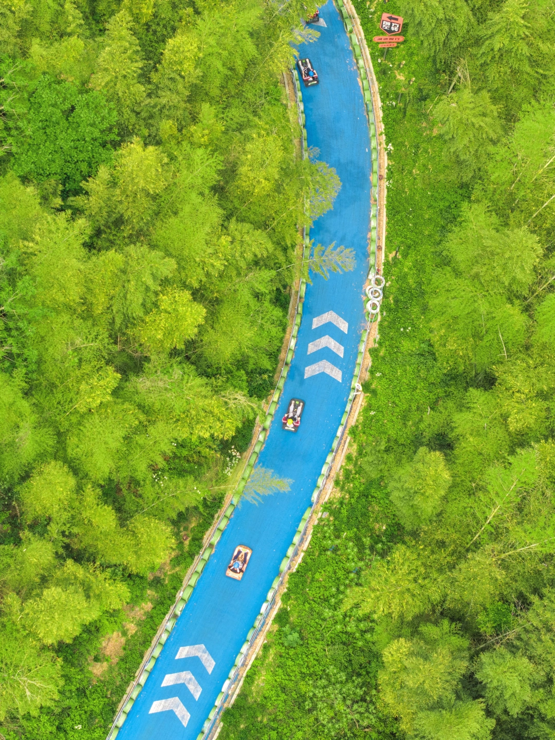 全长3km,在竹林里穿梭往下,和朋友一起往下,自己驾驶越过障碍物,太快乐了!!
