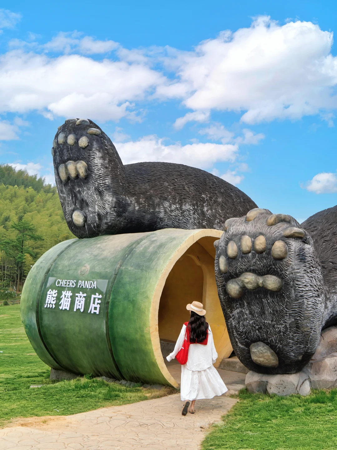 绿色的草坪铺到天际,还有成都同款大熊猫,拍照好好看