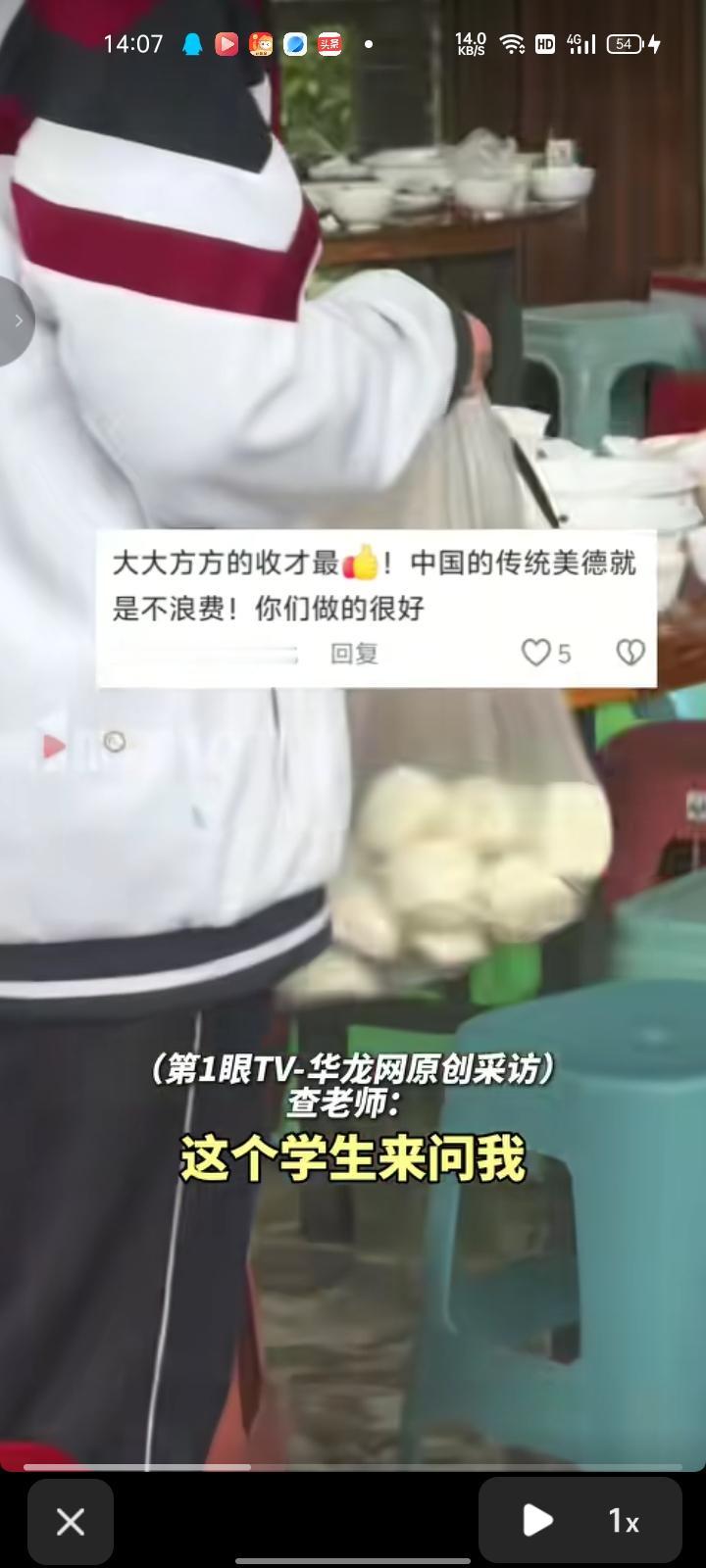 4月25日,贵州遵义。学校组织学生们外出游学,吃完午饭后,他们就找服务员要塑料袋,打包桌上剩的菜,这一举动老师看在眼里,感动在心里。另外,他们怕下午老师饿,还给老师塞了很多小番茄。