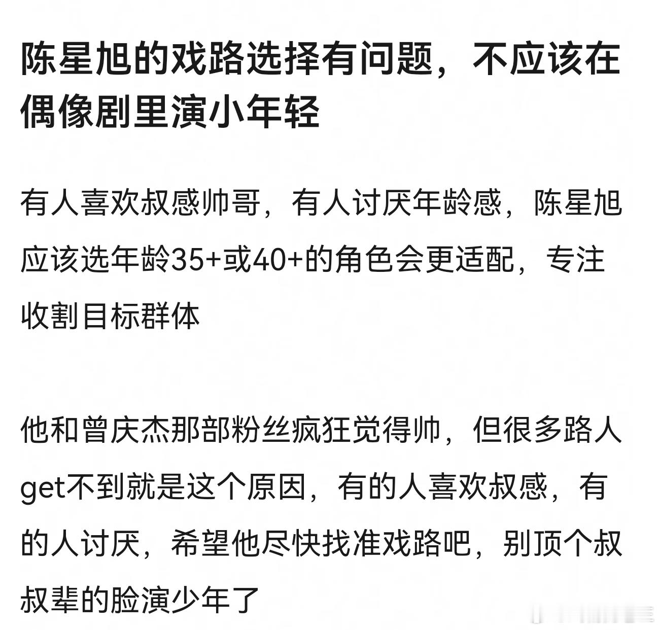 今天这个角度倒是有些新奇了说陈星旭戏路窄、不适合演年轻人的,怕不是没看过《你也有