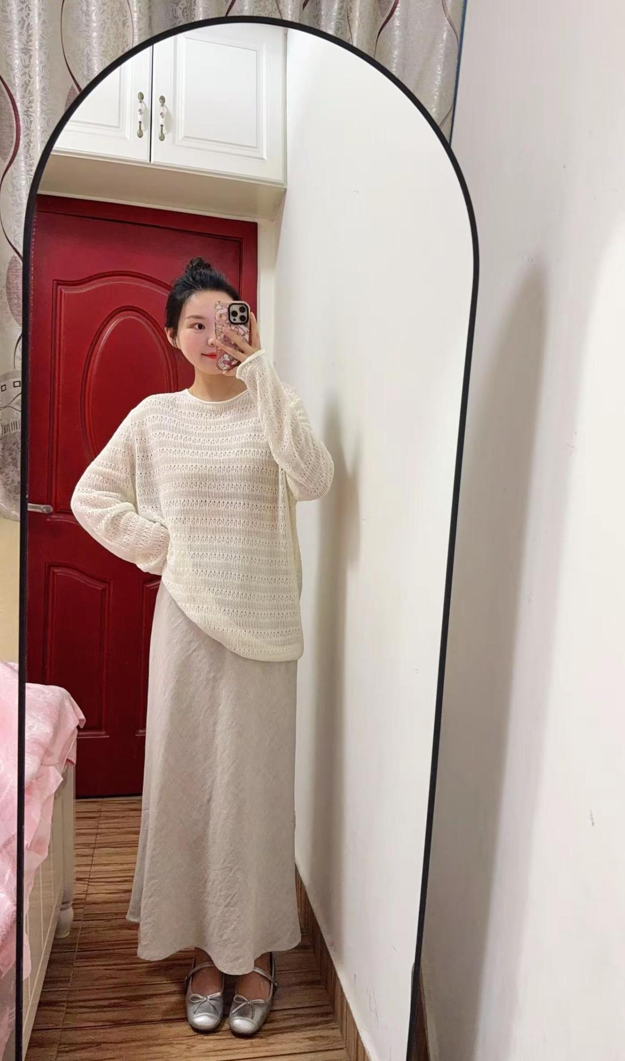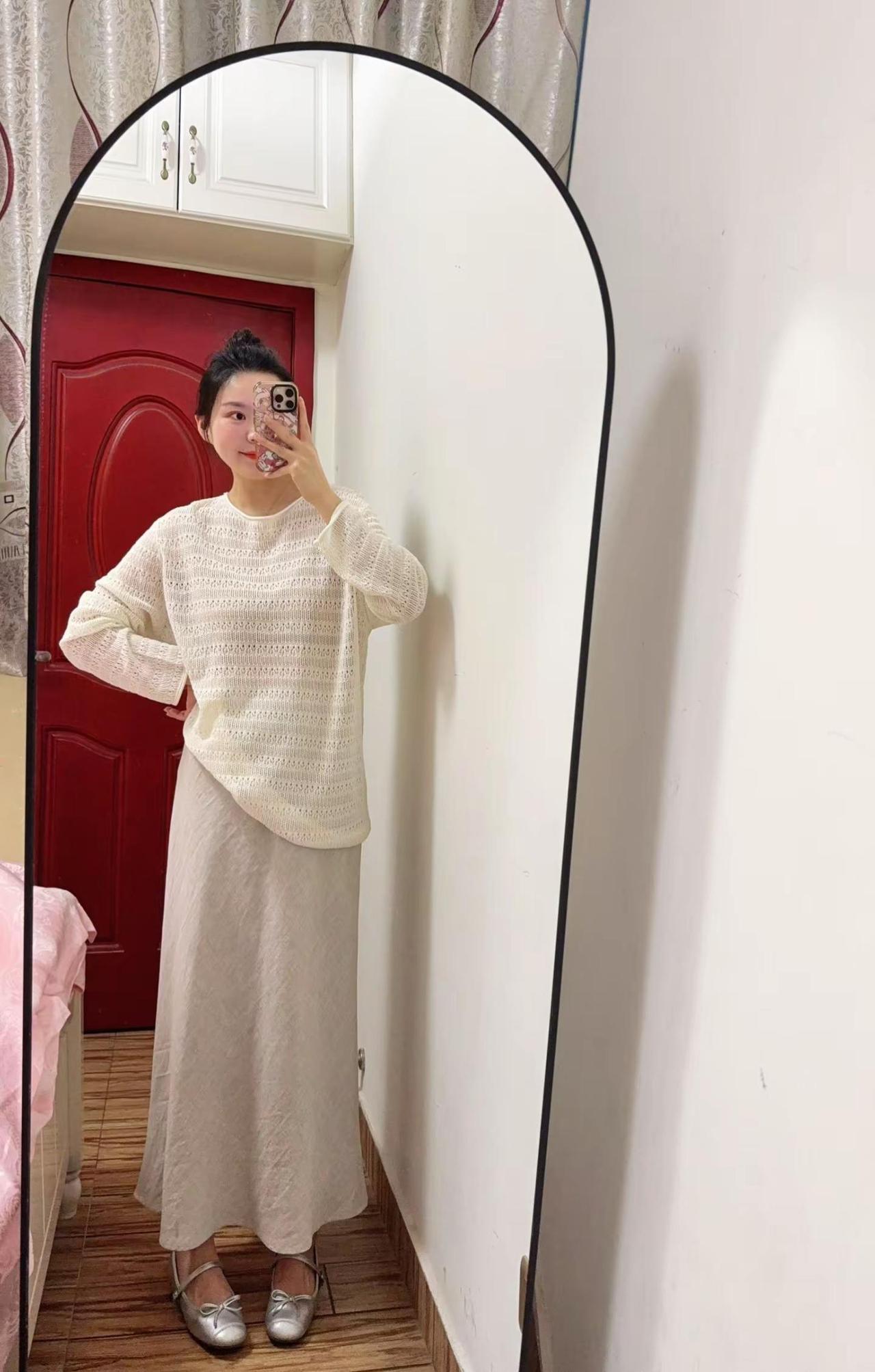 猴姐家这件镂空罩衫,肌理感超绝,自带温柔滤镜,搭配垂坠感满分的亚麻小洋伞裙,一套上身,温柔气质直接拿捏~瑛瑛服饰 温柔风 穿搭 对镜拍