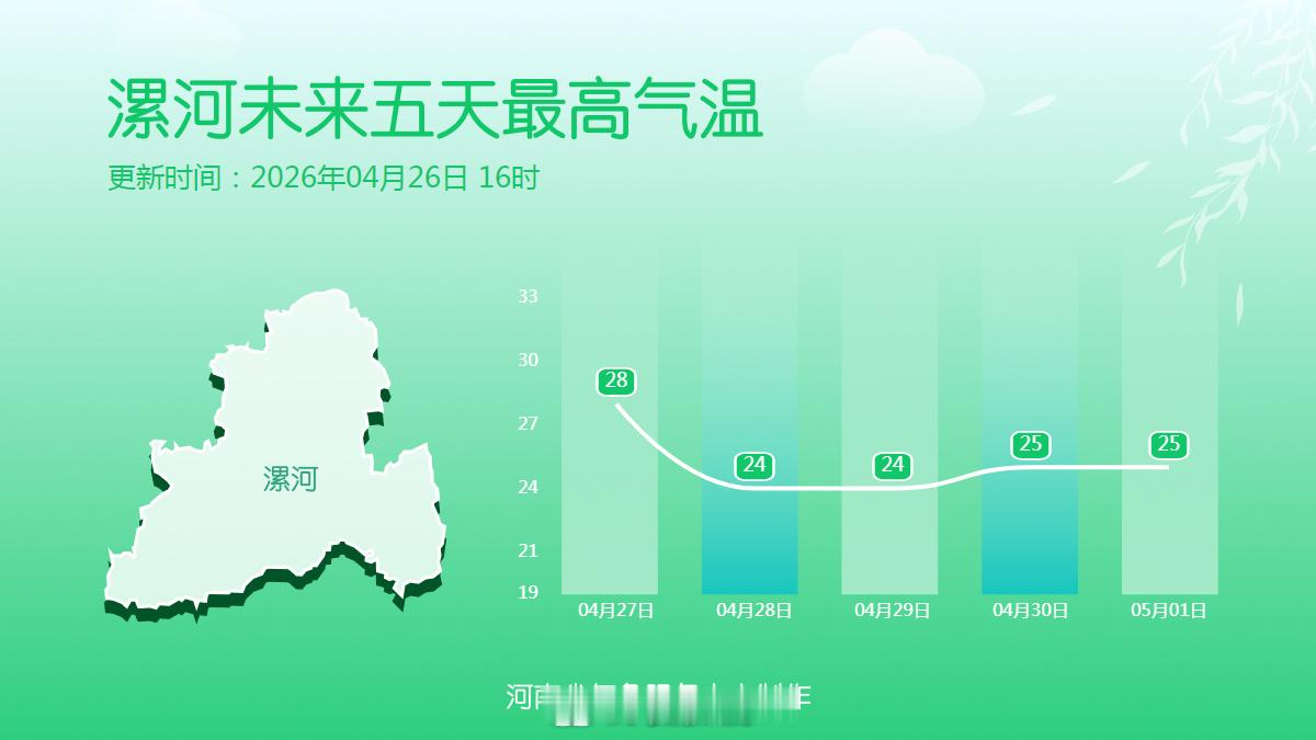 十八地市未来五天最高气温26下午至27日河南需防强对流天气明天起我省气温将会有所回落,周二、周三的最高气温不足25度。 (河南气象)信阳生活 信阳