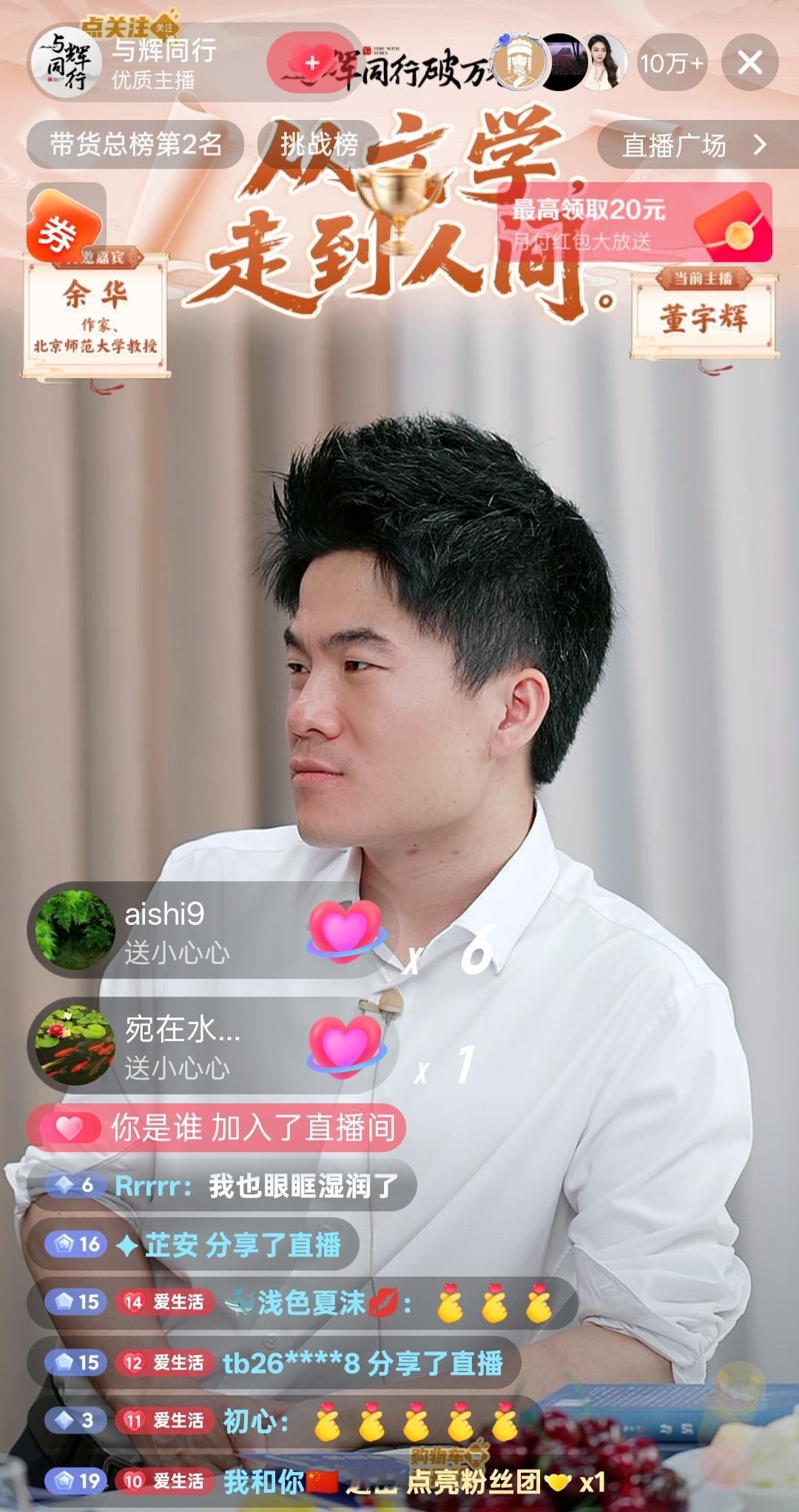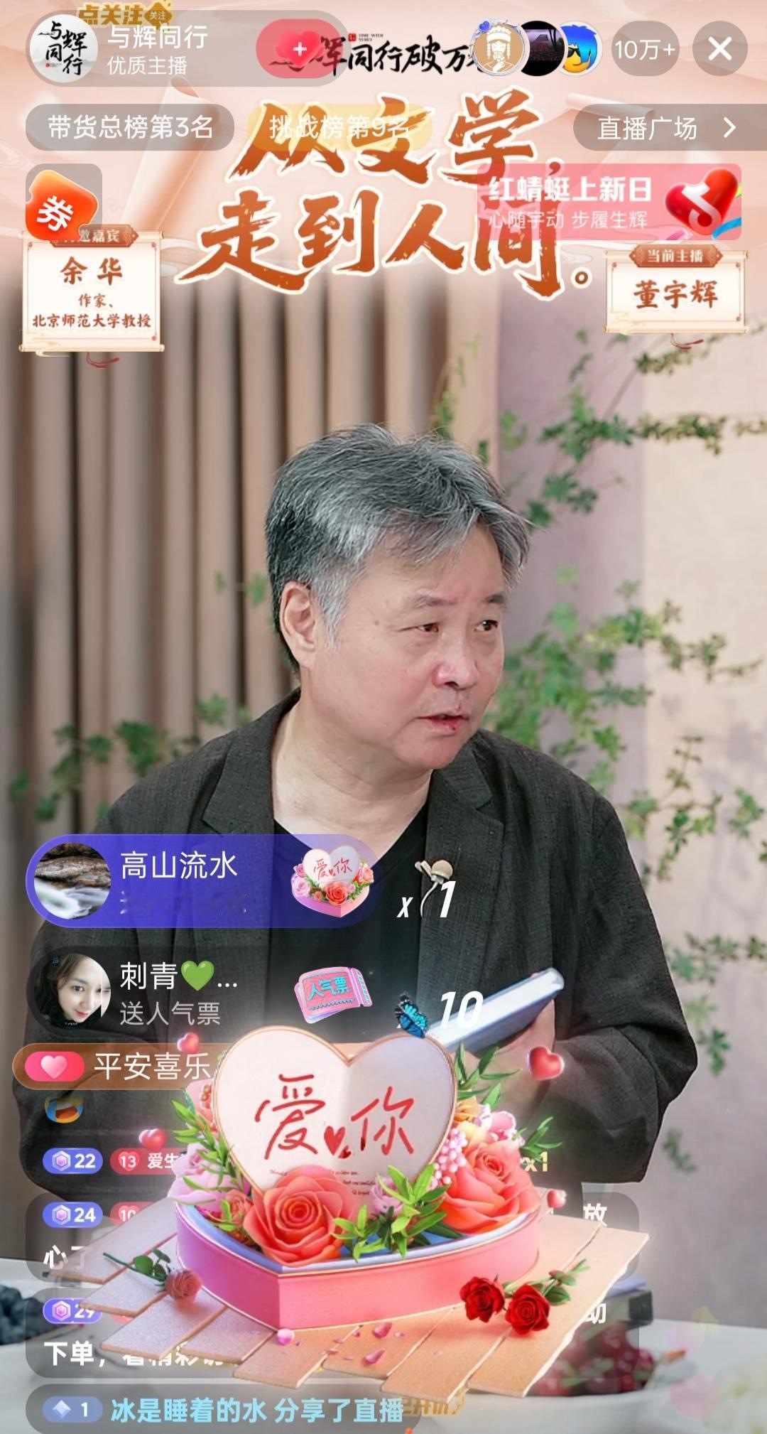 余华老师又来董宇辉直播间了,在作家面前,宇辉变得“沉默寡言”了,话都让余华老师说