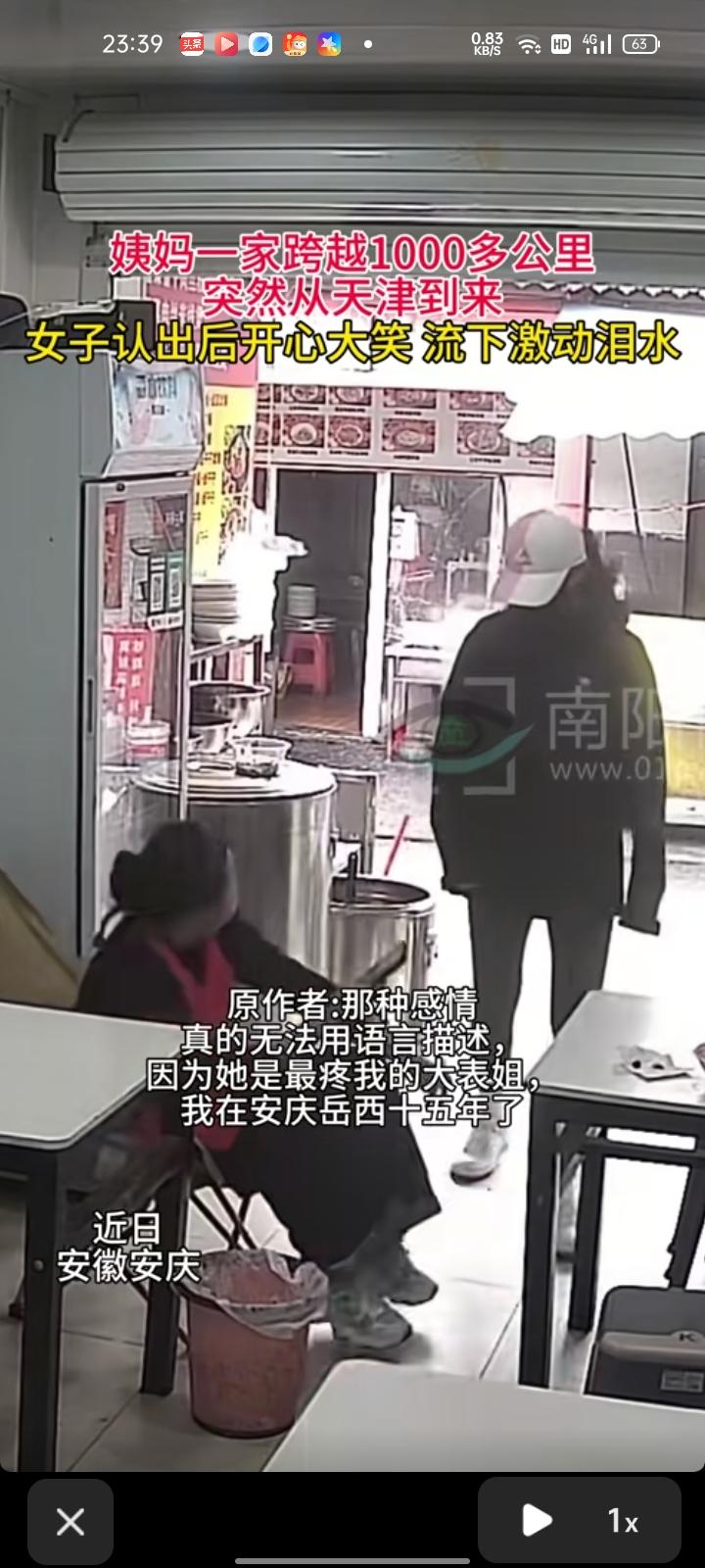 面馆老板称,那种感情真的无法用语言描述,因为她是最疼我的大表姐,我在安庆岳西十五年了。我一直盼着她来看看我在外工作、生活的地方,可我们各自都有了家庭,有忙不完的日子、担不完的责任,她始终没能成行。突然这一天来了,毫无征兆地站在我面前,那种就是“你终于来了”那种感觉。