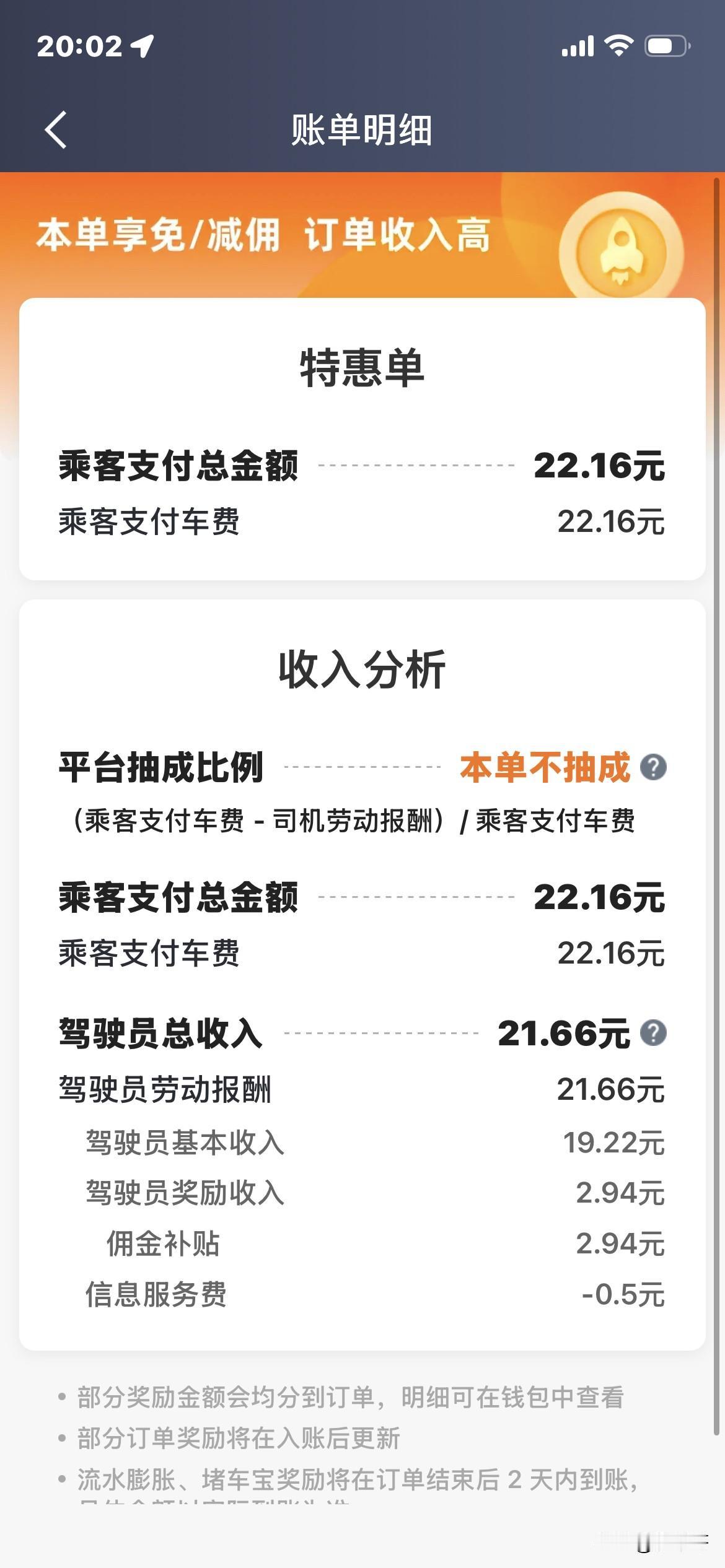 也就是说每单至少抽8到10块钱但当你买了免佣卡后,平台就成了慈善家,每单就象征性抽2块钱,而且还显示那2块钱都是平台补贴的,你的收益比乘客支付的总金额还要多。