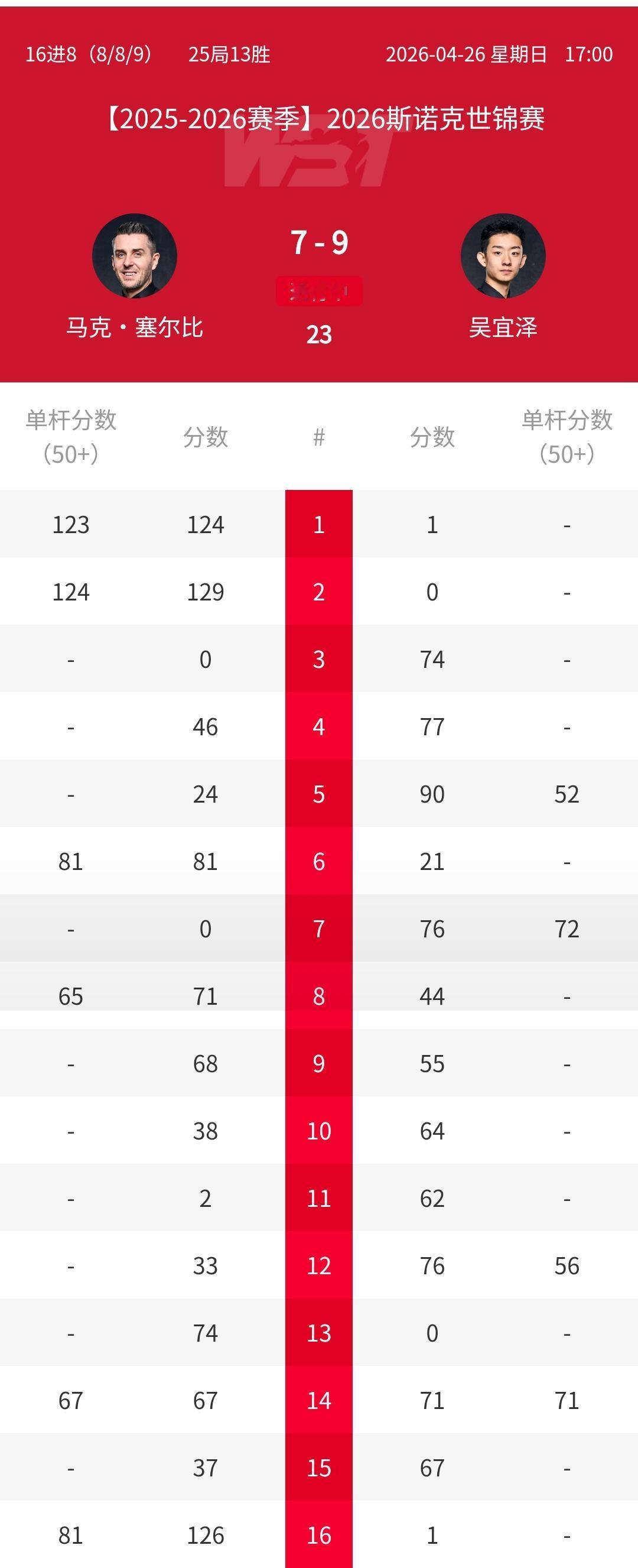 本届世锦赛似乎没有冷门……前面4个晋级八强的球员在第二阶段结束时,比分都是领先的。因此剩下4个八强席位大概是:吴宜泽、火箭、小特、萝卜。