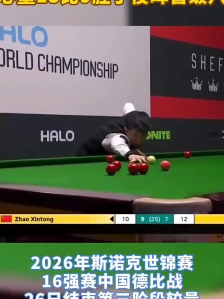 斯诺克世锦赛中国德比落幕,赵心童13比9胜丁俊晖晋级八强。 2026年斯诺克世锦赛16强赛中国德比战,卫冕冠军赵心童以13比9战胜丁俊晖晋级八强。赵心童将在四分之一决赛中对阵肖恩·墨菲,后者在另一场16强赛中以13比3淘汰了肖国栋。