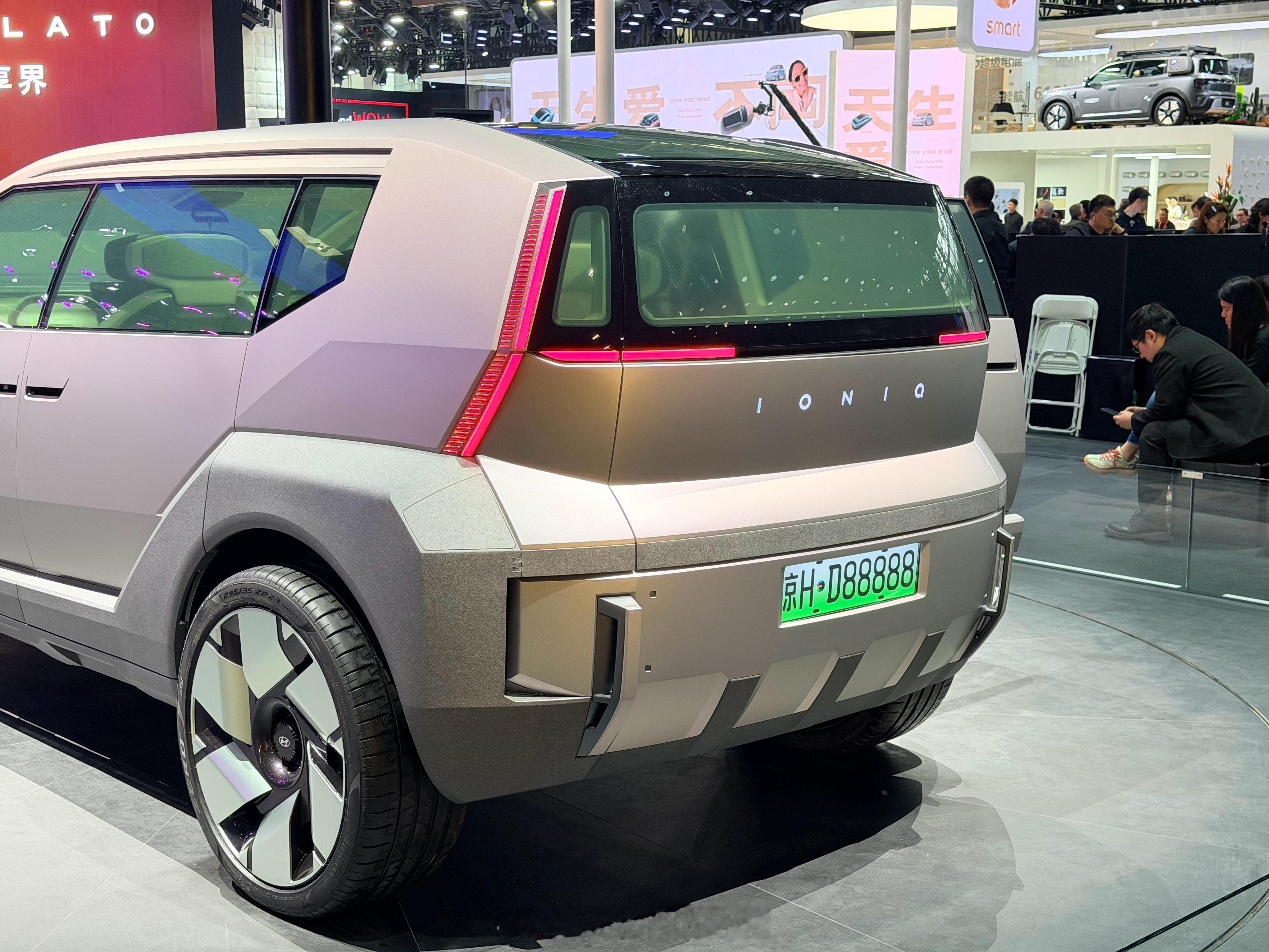 为了让观众更好地感受到设计的效果,这辆概念车上挂的新能源绿牌,其实是个显示屏……