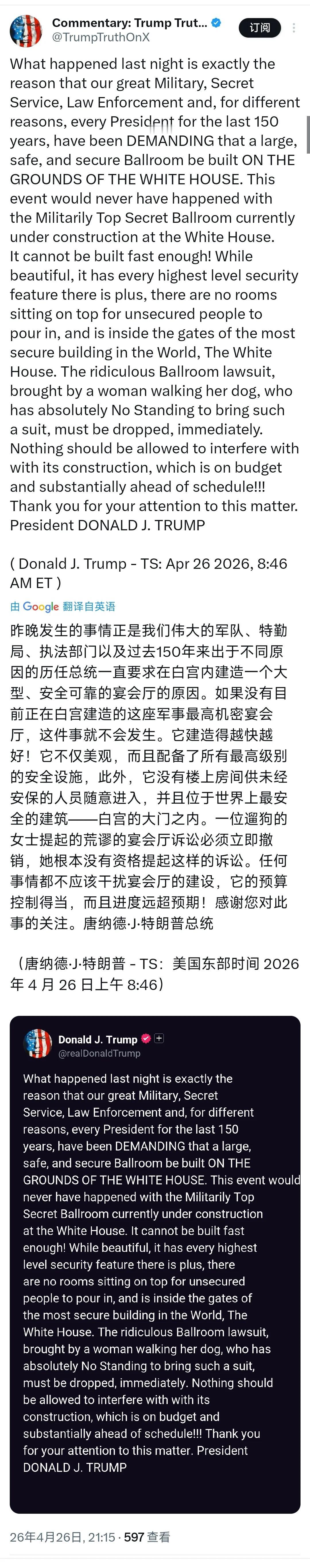 特朗普还是吃醋了,在发出赞扬特勤局的帖文后不久,又批评特勤局为什么先救副总统而不是总统?这让他非常不开心。其实枪击现场视频发出后,好事的美国网民已经发出了同样疑问。在随帖中一美国网民的回复点赞量最多,“原因很简单,总统久经枪击考验,而万斯只是首次,况且总统都已经80多岁了”。