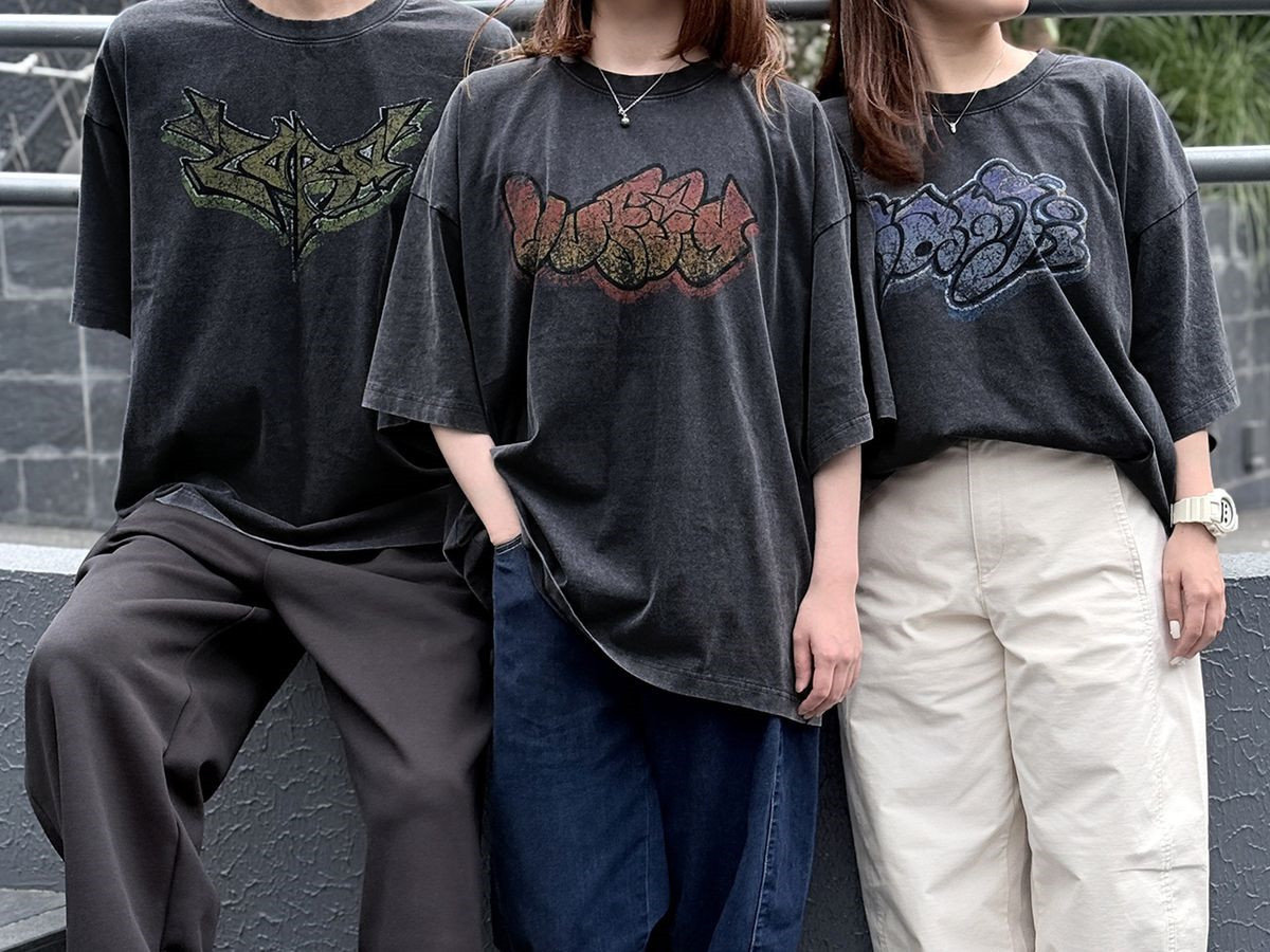■T恤注重布料质感与宽松穿着感的T恤。正面大幅印有路飞、索隆、山治名字LOGO,共3款。尺寸为M~XL。