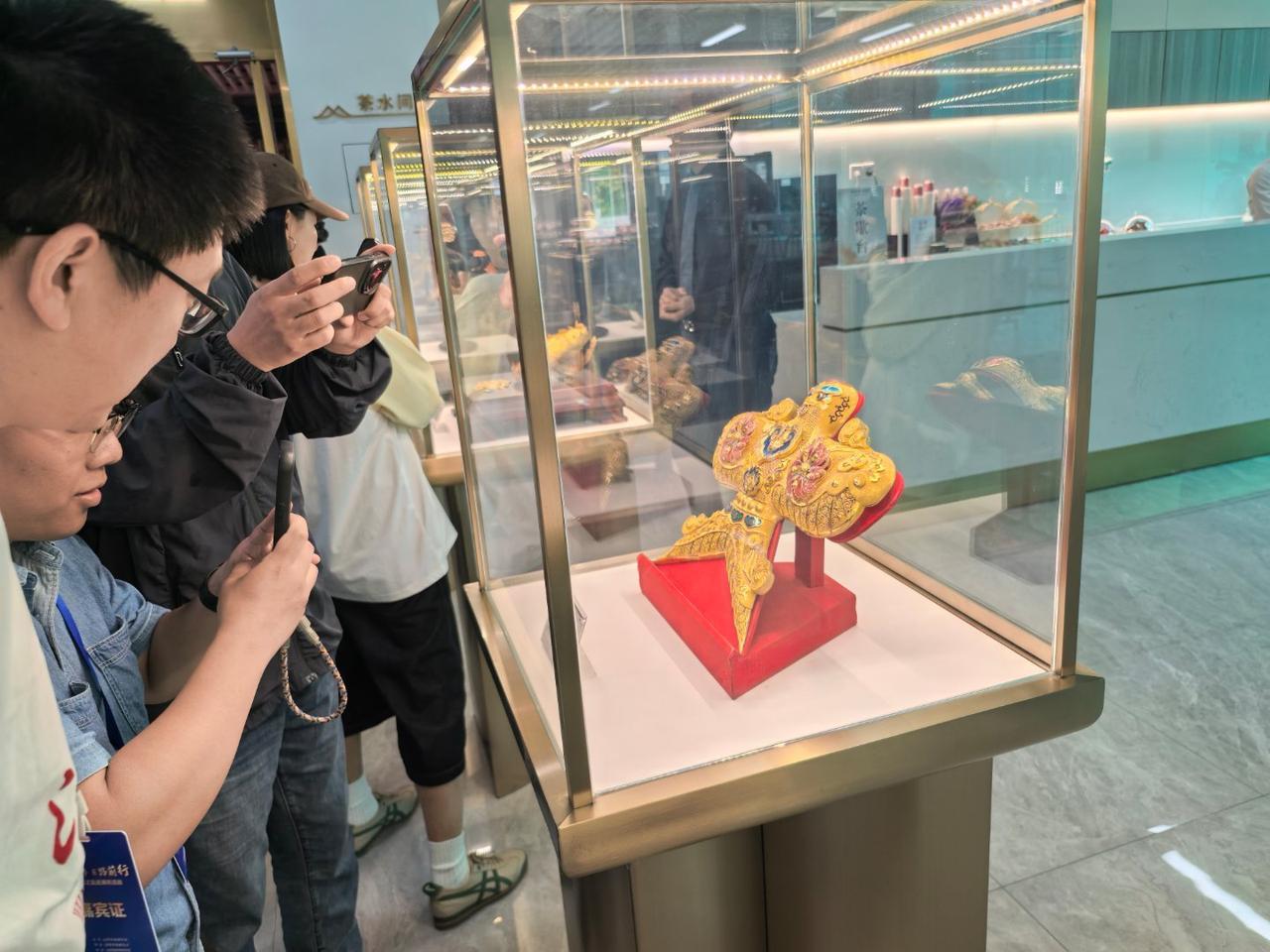 但一进展厅,看着那一件又一件金丝镶嵌的首饰和摆件,我承认我一个中年男人都沦陷了…