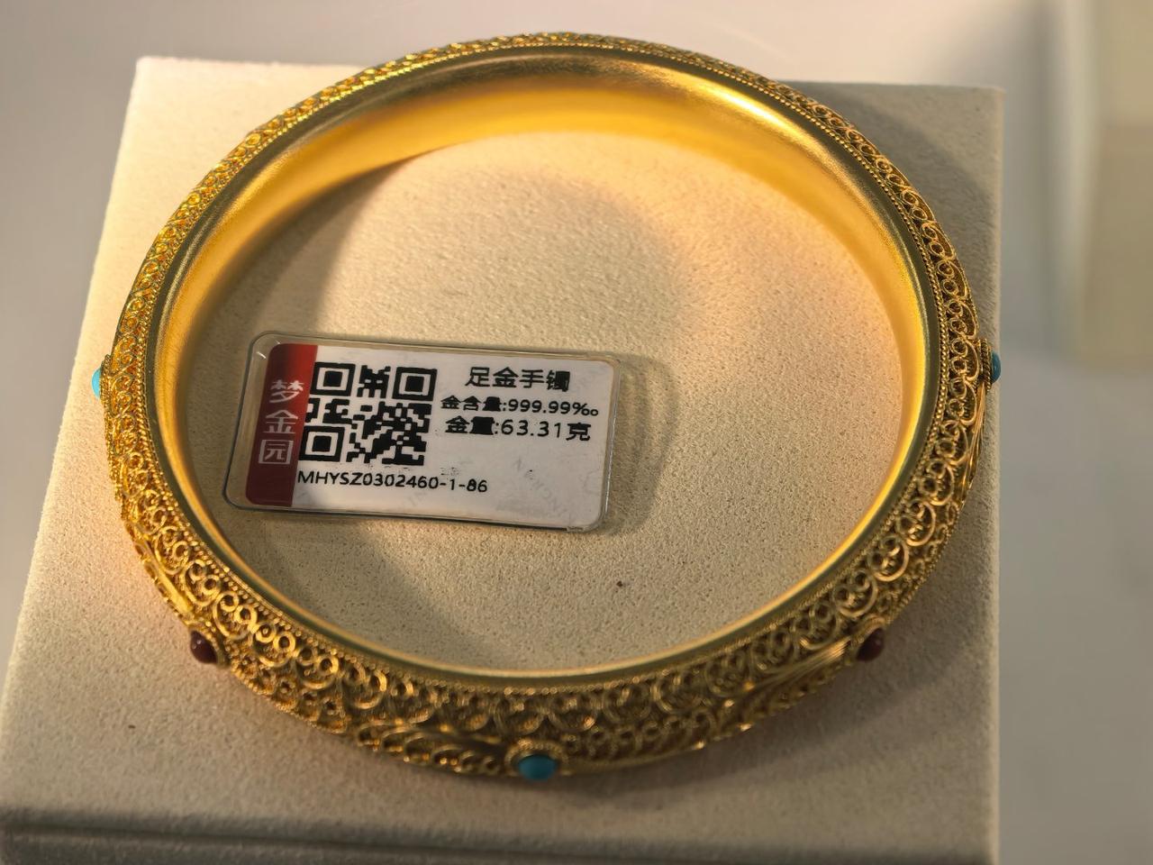 特别是一款60来克的新中式古法手镯,完全没有记忆中黄金饰品的“土味”,反而透着一种克制的贵气。