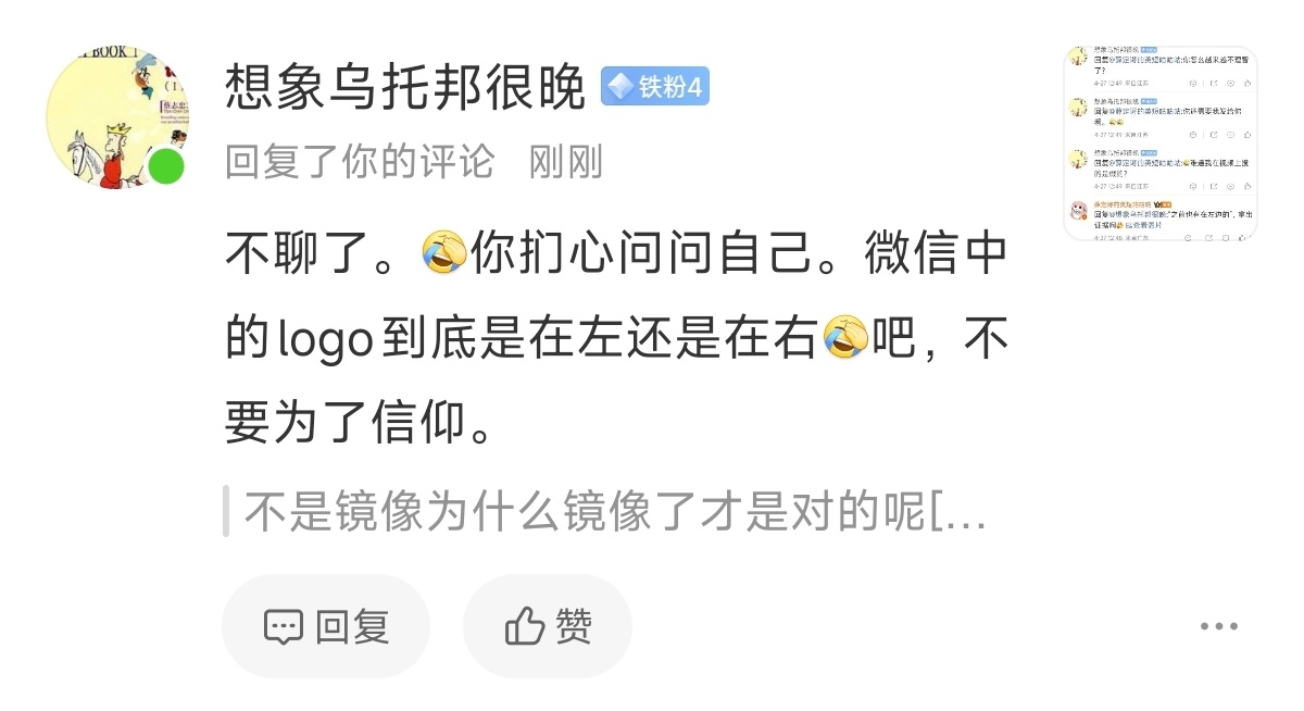 到最后他靠着“扪心自问”,“信仰”结束了战斗,认为自己代表了真理和胜利,而反驳他的都没良心,全靠信仰,又是胜利的一天✌🏻