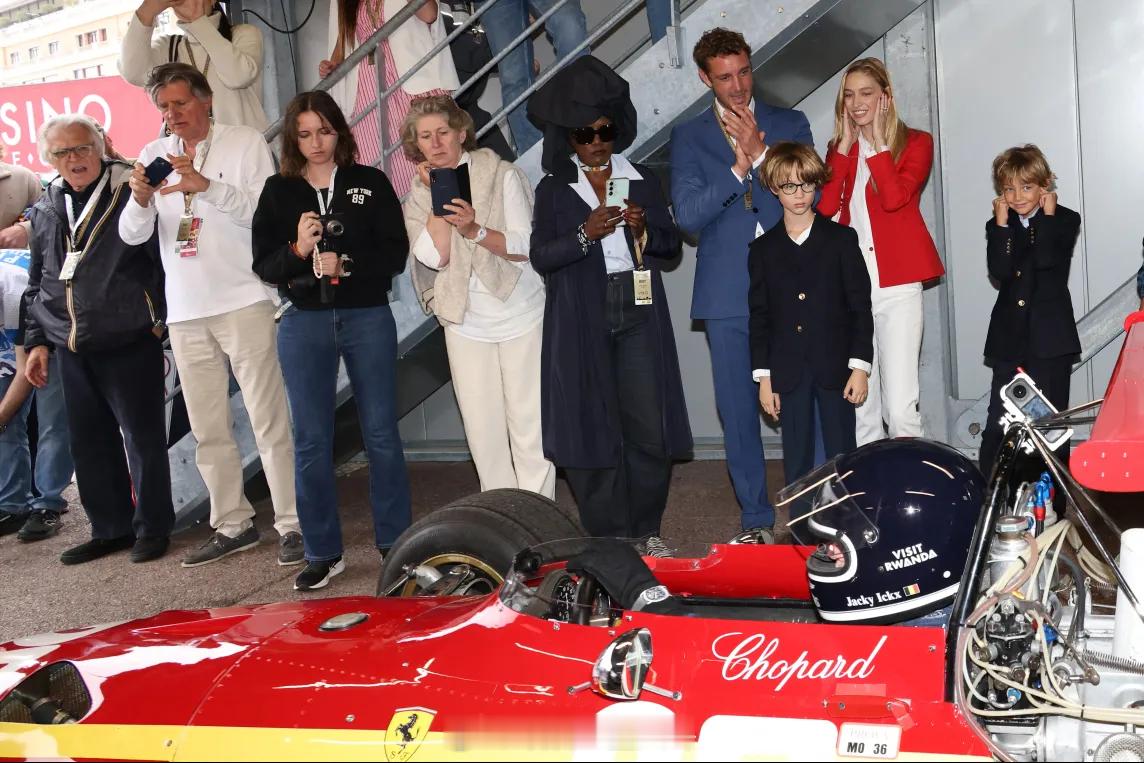 4.26 摩纳哥卡洛琳公主的次子皮埃尔和次媳碧翠丝观看赛车,带上俩儿子接着看