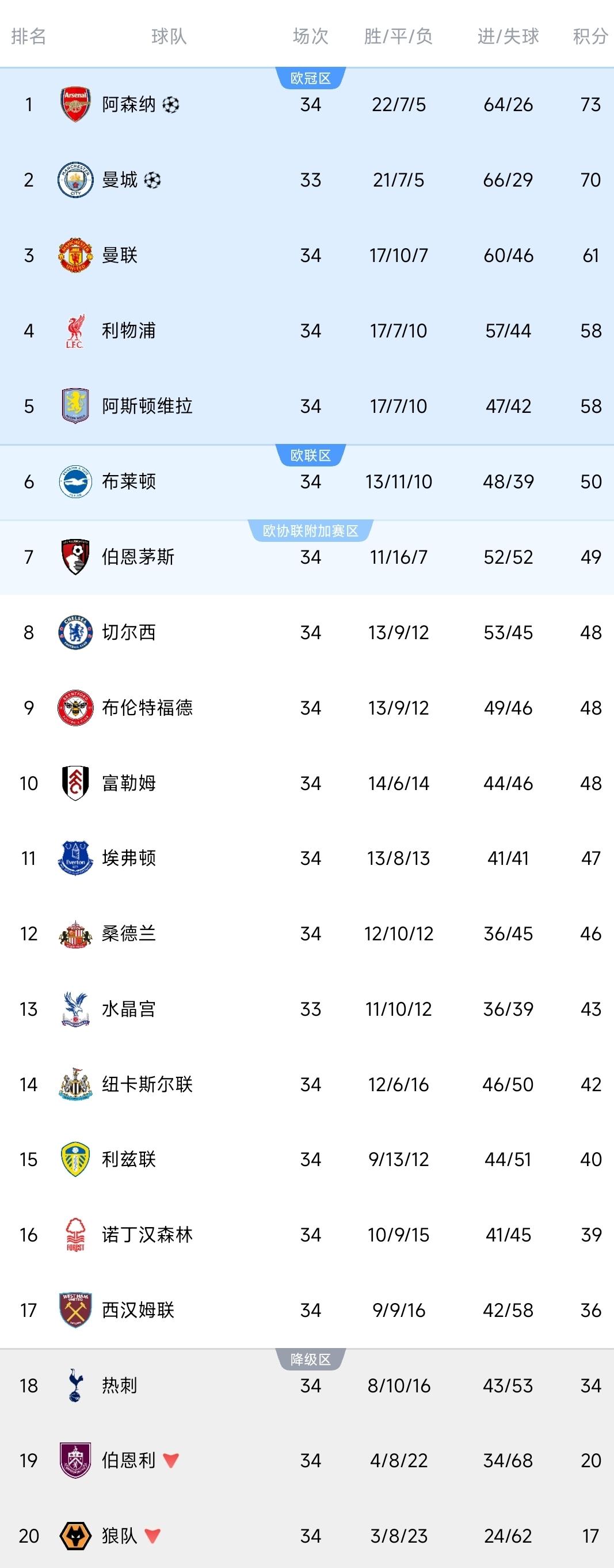 曼联主要补强防线,仅一球的容错,他们不能再有丝毫松懈,稳扎稳打,还是2比1顺利守住胜利,前34轮积61分,守住英超第三的位置,下赛季的欧冠席位基本稳了。