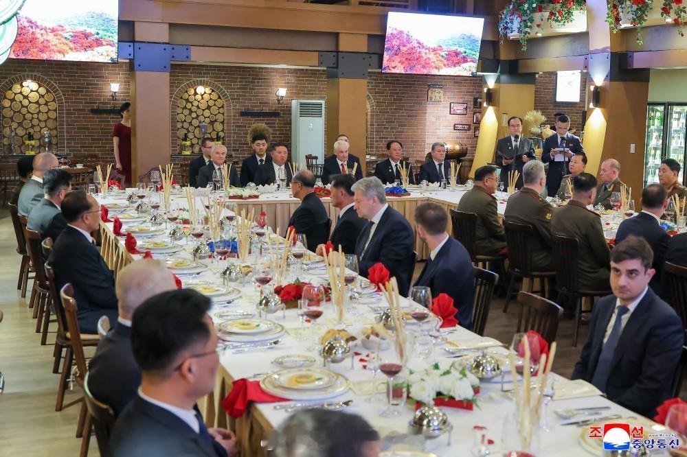 【朝鲜民主主义人民共和国国务委员会设晚宴招待出席海外军事作战功勋纪念馆竣工典礼的俄罗斯联邦官方代表团】