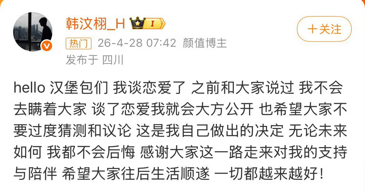 韩汶栩宣布恋情韩汶栩选择直面粉丝坦诚官宣恋爱,坚守了自己早前不隐瞒感情的承诺。一边是网友觉得普通人本该拥有恋爱自由,真诚坦荡远比藏着掖着体面;另一边粉丝难以接受也情有可原,靠男友感人设和粉丝偏爱走红,靠着大家的支持稳步发展,突然官宣难免让人落差感拉满。事业承诺还历历在目,如今官宣恋情引发巨大争议,网红的恋爱边界感,确实一直很难平衡。