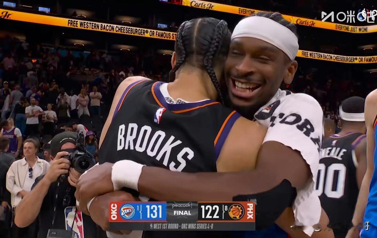 雷霆和太阳的比赛结束了,经过鏖战,雷霆131-122击败太阳,虽然没有大胜,但是雷霆的优势一直持续了整场比赛,最终雷霆4-0横扫太阳,成为第一支打进次轮的球队,也是唯一首轮横扫对手的球队。