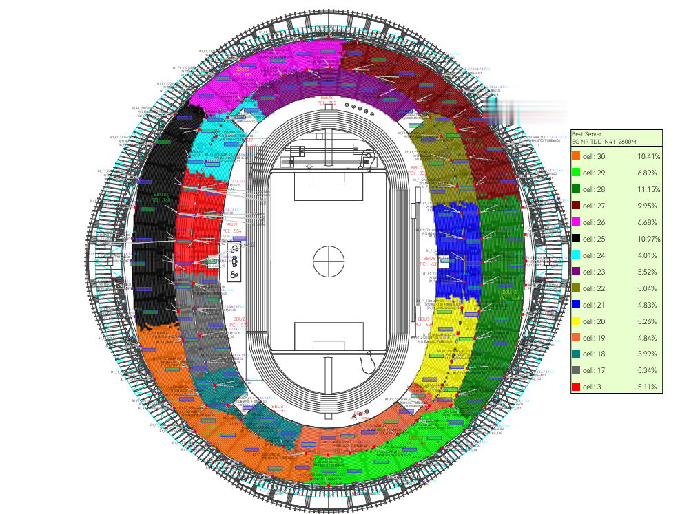 结合临沂奥体公园体育场的场地特点,临沂移动对场内15个区域精细规划,采用新型宽频lampsite设备实现全域覆盖,运用异频组网技术保障信号稳定传输,并在检票口等人员密集区域部署应急通信设备。本次场内外共优化开通4G小区214个、5G小区188个,显著提升网络承载能力,全面满足现场直播、照片分享等高频上网需求。