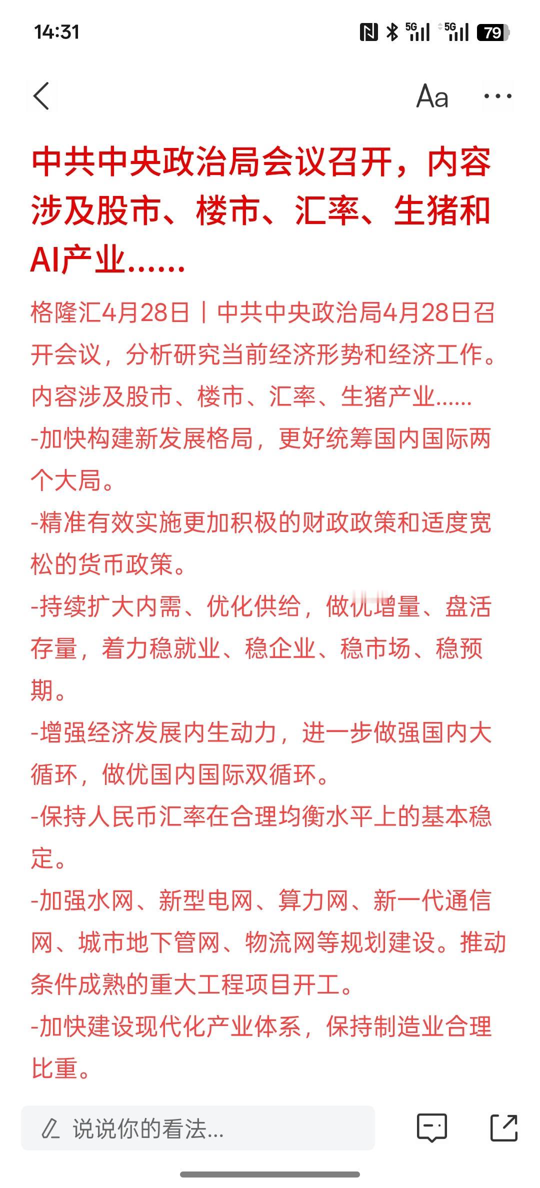 利好消息,内容涉及股市、楼市、汇率、生猪和AI产业.....所涉及的行业还是非常广泛!主要是稳定增强金融资本市场的信心,AI产业链持续扩大发展!继续扩大内需,稳定就业,稳定经济增长!