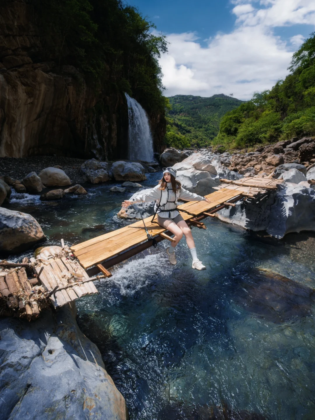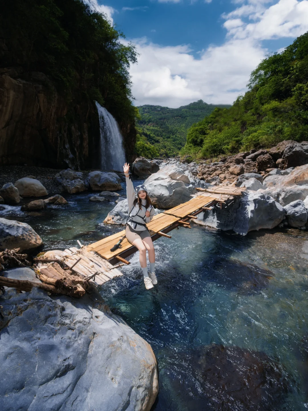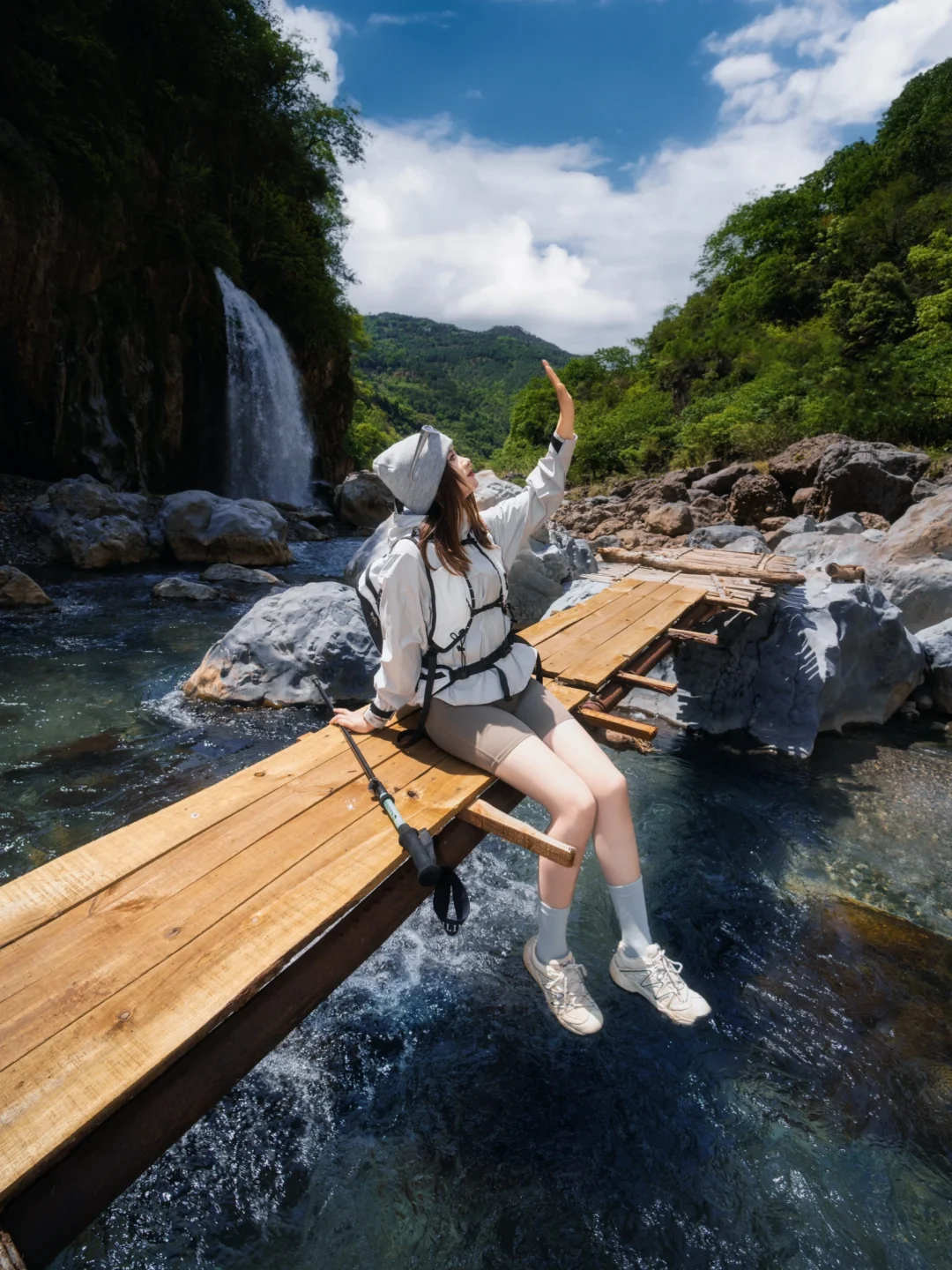 户外 瀑布 徒步 溯溪 徒步穿搭 户外穿搭 拍照姿势 生命力 生命力拍照姿势