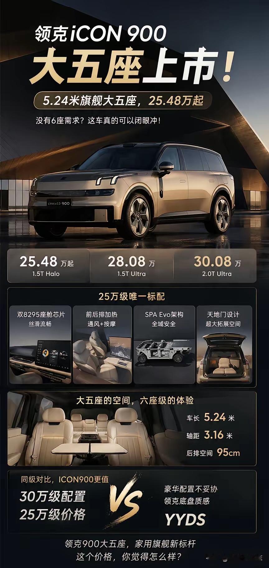 对比竞品,领克ICON900的尺寸优势直接转化为空间优势,其轴距在同价位竞品中处于领先地位,车内空间利用率更高。同时,新车在配置上做到了“入门即高配”,激光雷达、高清大屏等核心硬件不缩水,相比部分竞品在中高配车型上才提供类似配置的做法,性价比更为突出。此外,领克品牌在车辆用料和底盘调校上更注重质感与舒适性,结合成熟的混动技术,让它在家用实用性、豪华质感和出行安全性上都展现出了更强的综合竞争力。