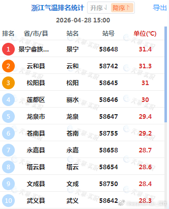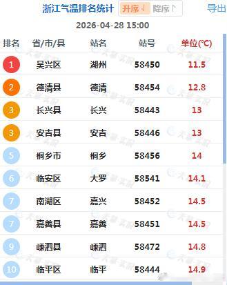 【浙江南北温差大】今天下午,浙江省内的气温差异巨大。北部因为冷空气+阴雨,气温地面,15时湖州只有11.5℃。浙江南部在暖气团控制下,叠加光照加热,气温超30℃。15时景宁有31.4℃,比湖州高了将近20℃。不过明天浙江南部,因为阴雨和冷空气到来,气温也将大幅下降。