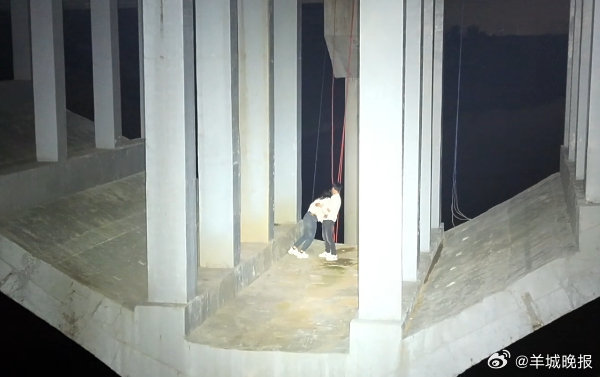当消防员穿戴全套防护装备、系牢安全绳索,降到桥洞平台时,这对情侣情绪还没缓过来,仍存在争执。救援人员说,女子坠落的桥墩平台距离桥面10多米,桥墩下方就是江面,也有6米高度。