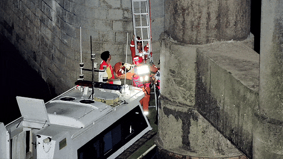 4月21日凌晨1点,兰溪市消防救援指挥中心接到报警,某大桥桥洞内有2人被困。现场救援人员夏财秋说,当时凌晨桥洞内光线昏暗、地形复杂,救援条件十分不利。“被困的是一对情侣,均30岁左右,两人同时被困在某大桥桥洞内,女子腰部受伤。”