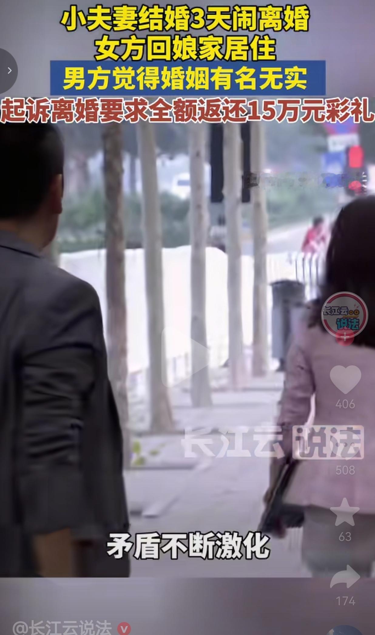 结婚才3天就闹离婚,男方要全额退15万彩礼,法院调解书都下来了!