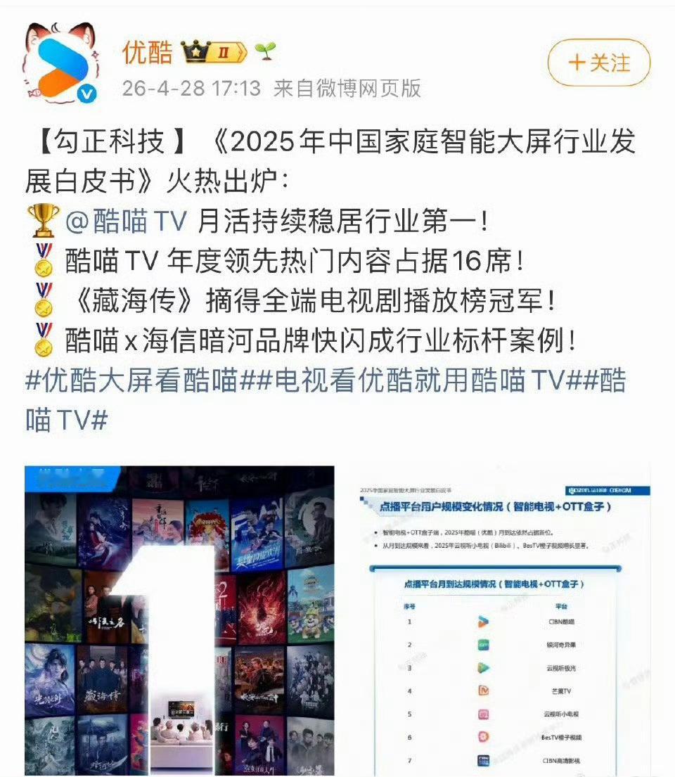 藏海传摘得全端电视剧播放榜冠军藏海传家庭终端全端电视剧播放榜冠军 肖战藏海传实力登顶!全端播放榜冠军荣誉加冕,家庭终端热度强势领跑,藏海魅力席卷全网,数据实力认证爆款品质✨