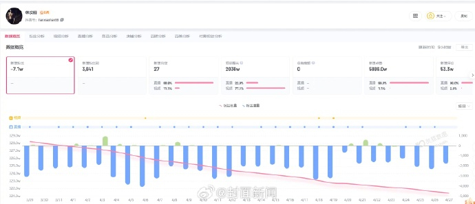 【#韩汶栩近30日掉粉7.1万#】#韩汶栩 ZXY雨# 4月28日早上,网红韩汶栩发文正式官宣恋情,强调“谈了恋爱就会大方公开”,并呼吁粉丝勿过度猜测,#韩汶栩宣布恋情#相关话题引发热议。第三方数据显示,韩汶栩近30日掉粉7.1万。