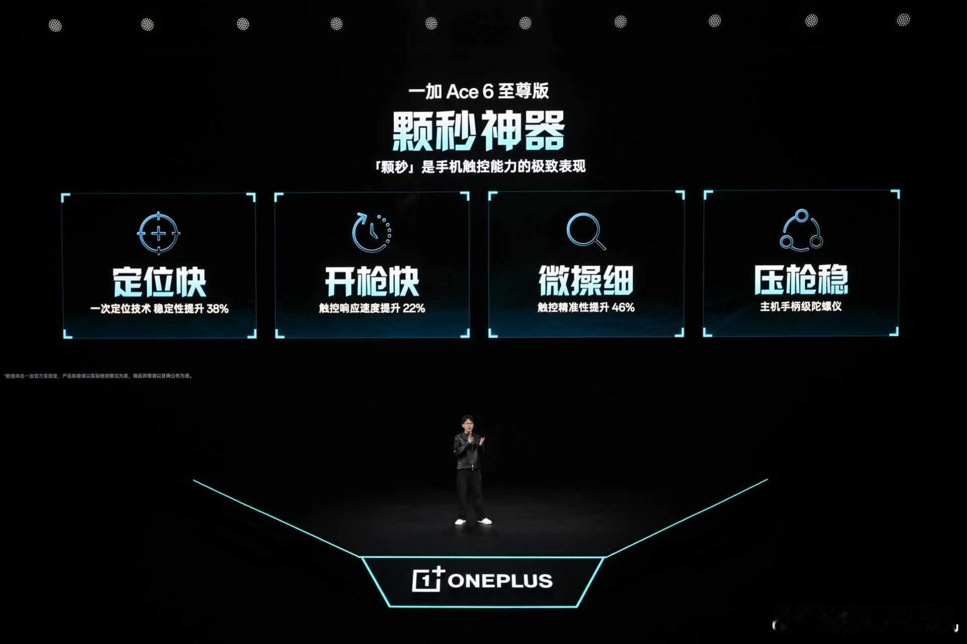 一加 Ace 6 至尊版实现了手机触控能力的最高水平,搭载全新升级的「灵犀触控芯」、主机手柄同款陀螺仪,实现定位快、开枪快、微操细、压枪稳的极致触控表现,是游戏战场上的最强「颗秒神器」!