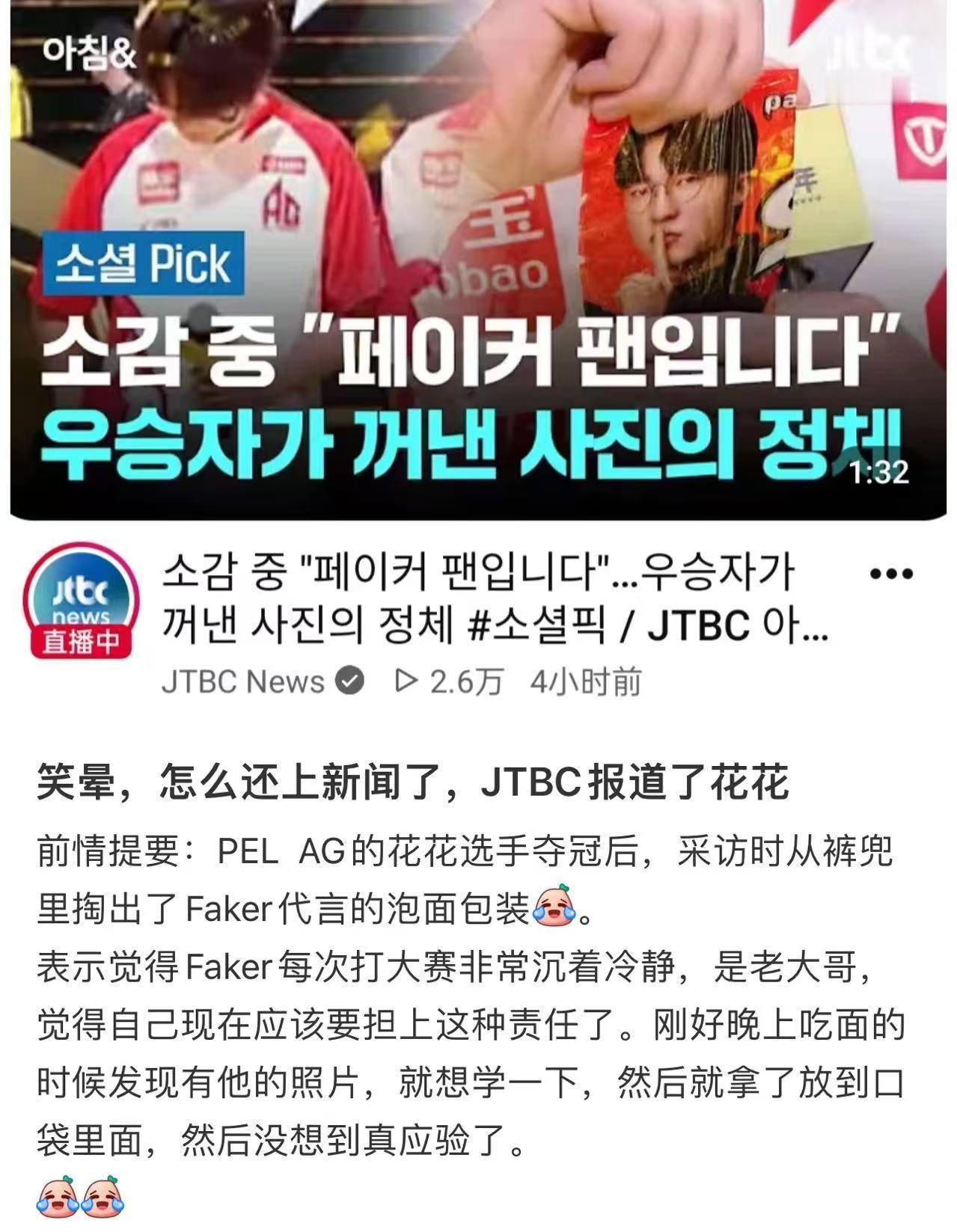 花花致敬Faker火出圈了排面炸裂!花花夺冠致敬 Faker 的片段登上主流电视