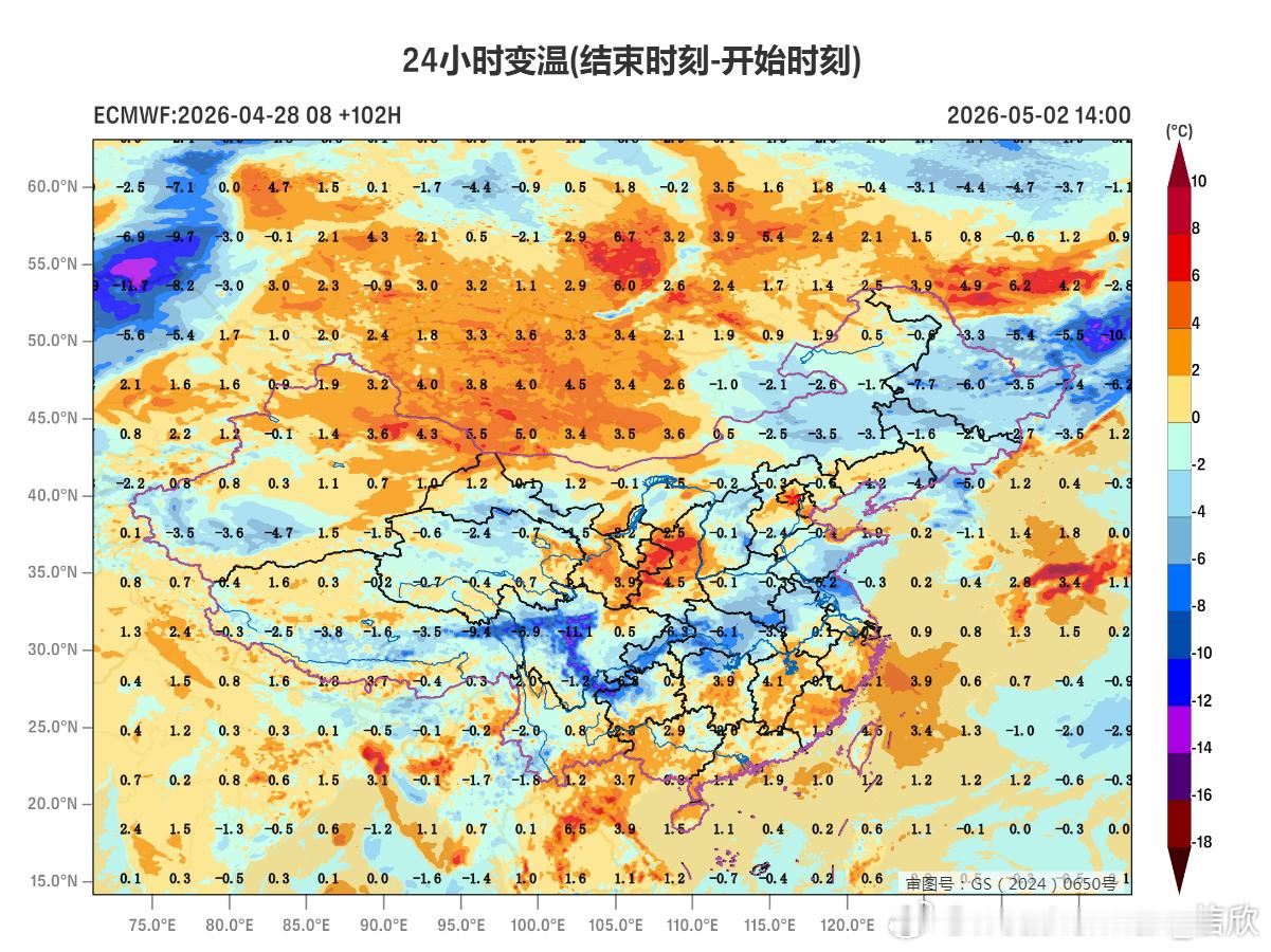 5月3日以后,这股冷空气影响结束。北方地区又会迎来一轮明显升温,掀起一轮气温创新高的浪潮,5月4-5日,又会看到气温南北倒挂。比如5月5日最高,沈阳28℃、呼和浩特28℃、太原30℃、石家庄33℃、济南31℃。