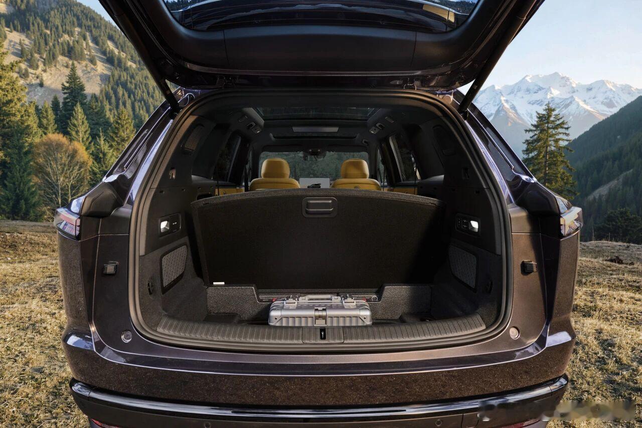 后备舱1200-2600L:常规容积同级最大,二排放倒后形成纵深2.2米纯平空间,内置双下沉储物区(106L+63L)分层收纳露营装备;演示可装载两台成人公路车+折叠车或展开三段式大床。