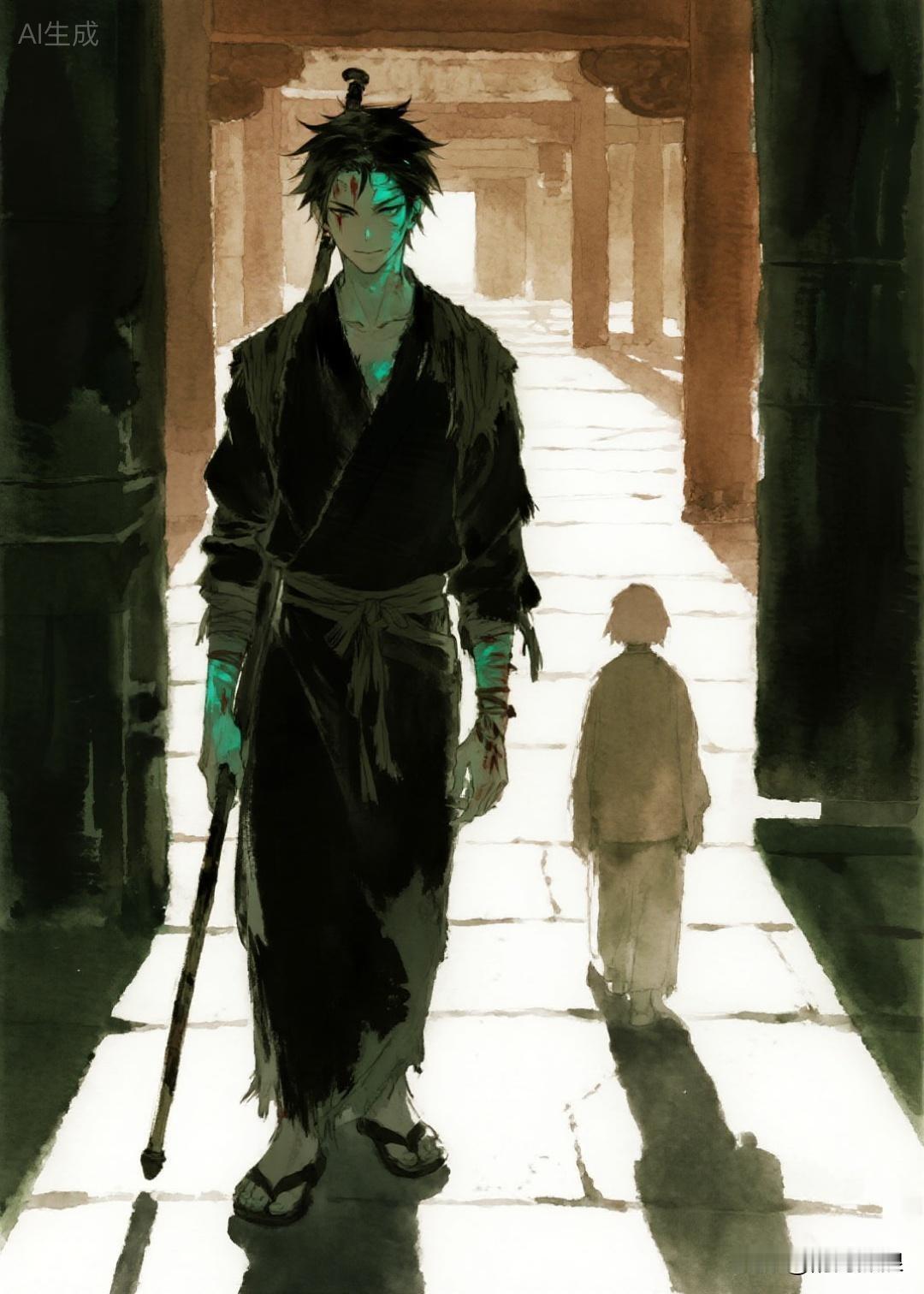这时弟弟的妻子正在家中生孩子。正在生着,就看见丈夫走进房间中来,孩子就呱呱坠地了。接生婆发现,这个孩子头上屁股上全部是青色。进门的丈夫突然不见。
