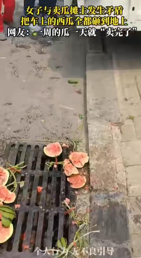 但这位女士的处理方式太过极端。不满意可以退款、投诉、找市场管理或者报警协商,当众砸毁整车西瓜、肆意破坏他人财物,早已超出合理维权范围。