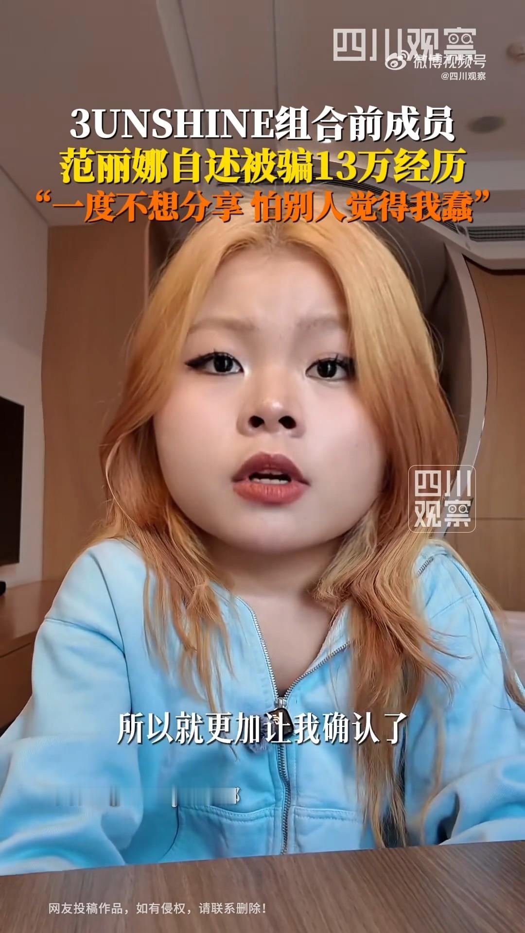 3UNSHINE前成员称曾被骗13万3unshine前成员范丽娜自曝被骗13万!
