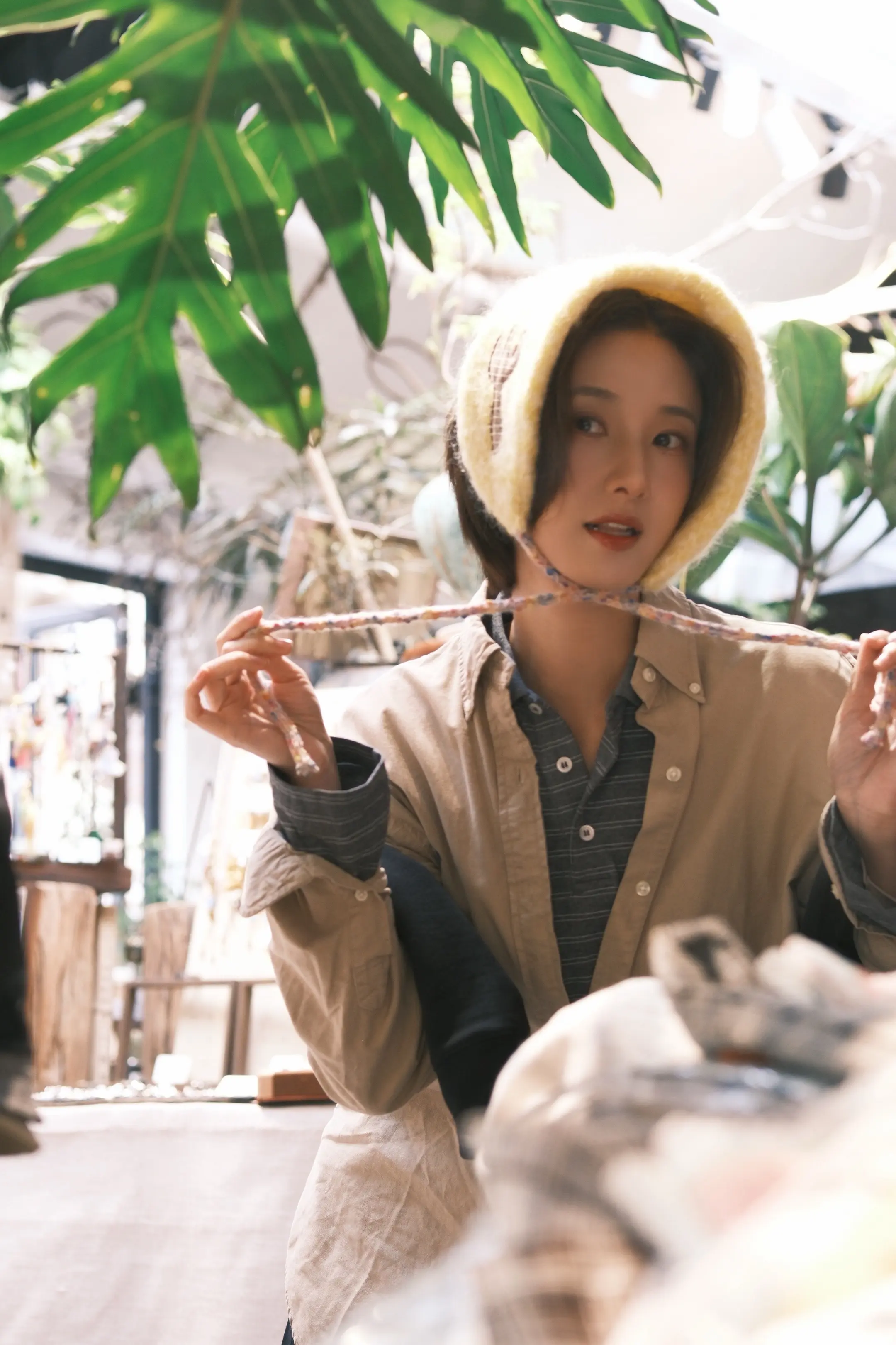 张子枫街拍瘦成“纸片人”,这一套复古温柔!焦糖短款针织开衫搭配同色系做旧阔腿裤,