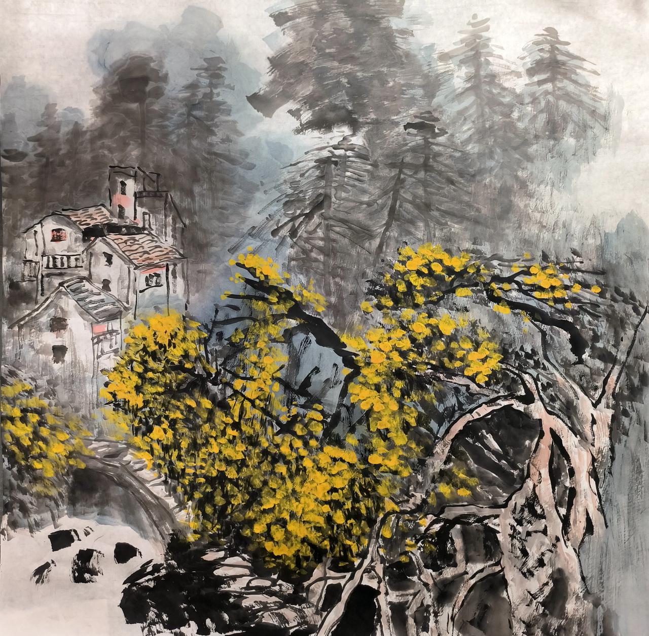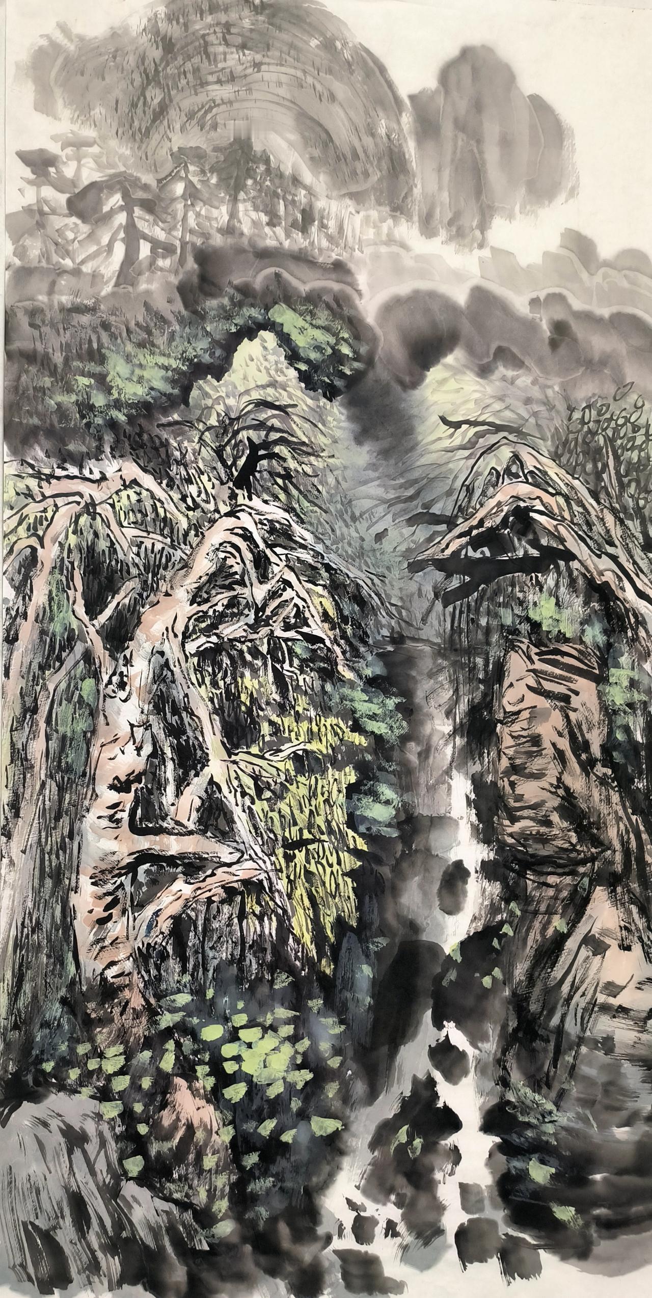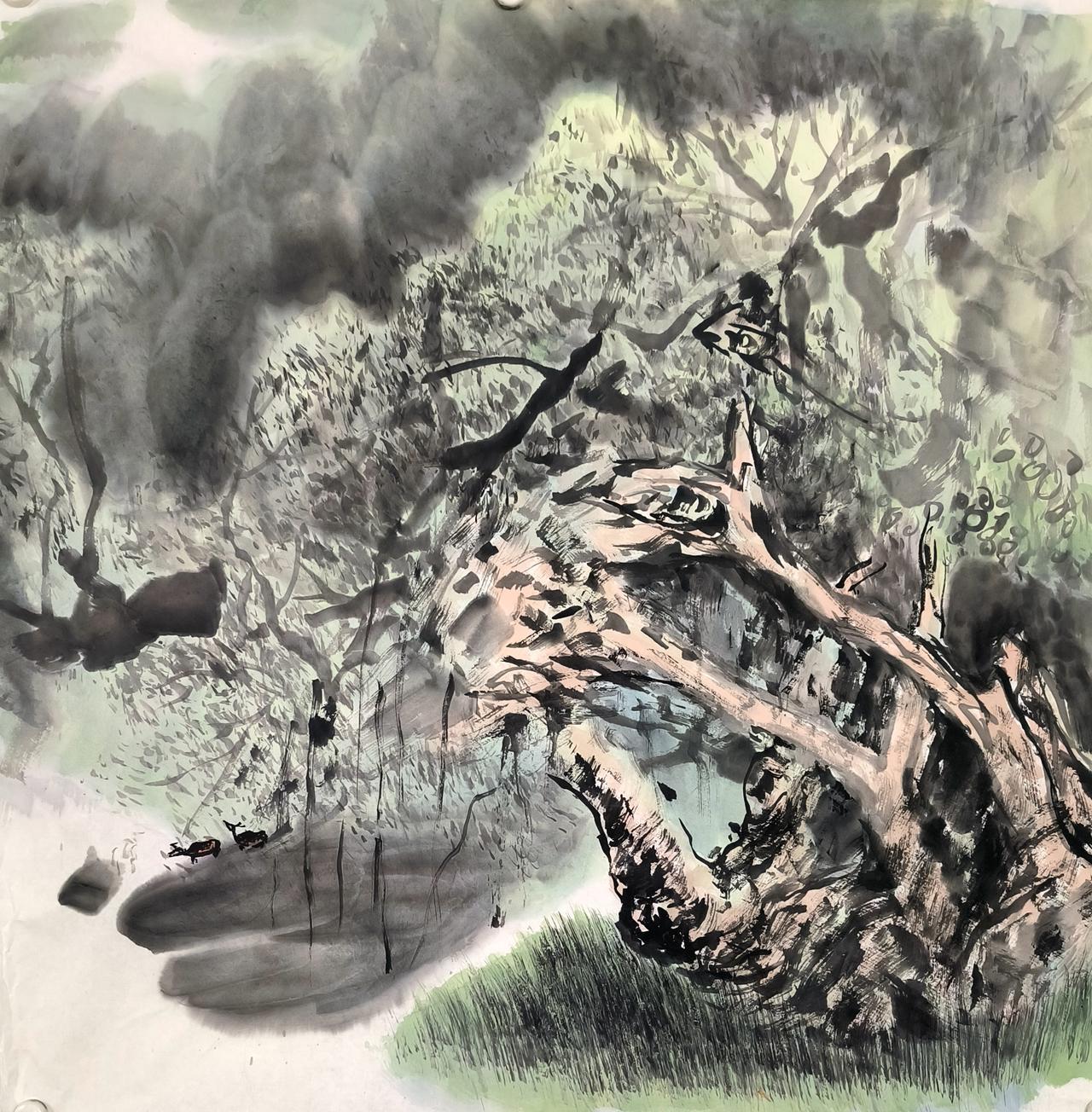 期间有幸参加了张老师的公开课,老师言语亲切,和蔼可亲,幽默风趣,强调笔墨当随时代,要不断创新。近距离观看老师的示范,他的用笔用墨潇洒奔放,大胆豪放,自由随性,更惊叹老师对景物深厚的表现力。