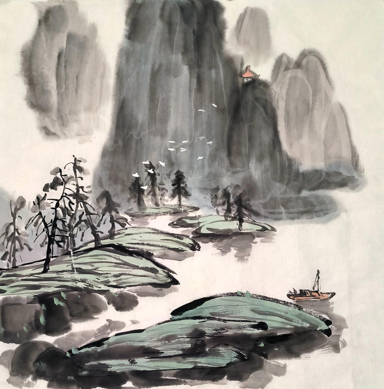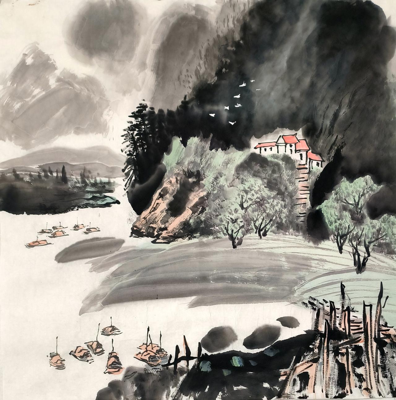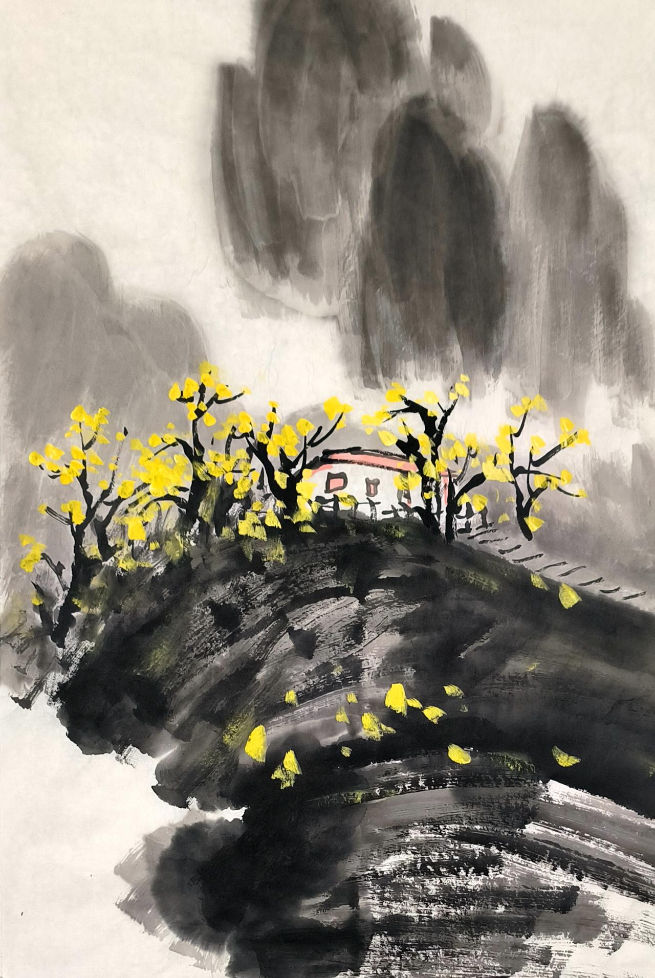 三月的星湖,紫荆花一路飘香,踩着落满紫荆花瓣的台阶,步入张际才老师工作室,一眼就被墙上一幅幅绝美的画作震撼到了,被张老师原作的艺术魅力所折服。第一星期我每天只临习一幅,更多是读画和视频学习,老师的教学视频是他几十年打磨的经验总结,给了我很大的启发,强调重在笔墨,用笔时要“意在笔先”“意上笔下”“意左笔右”,用墨有破、积、烘、染、泼等技法,受益匪浅。
