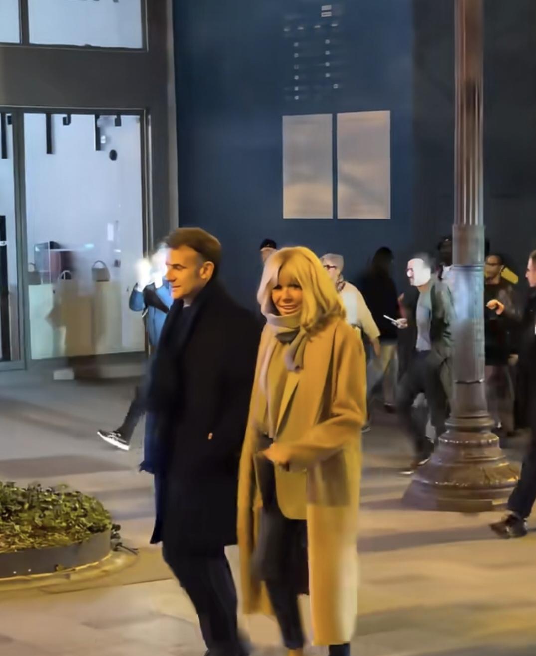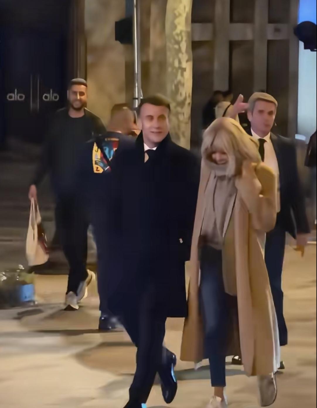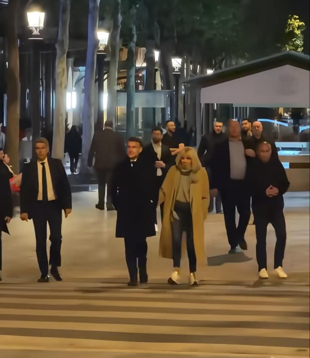 真爱夫妻!法国总统马克龙和夫人布丽吉特在香榭丽舍大街悠闲漫步!夜晚街灯璀璨,夫妻二人饭后一起漫步闲逛。布丽吉特贴心地挽着马克龙的胳膊,见到路人,时不时地挥手打招呼。就如非常平凡的夫妻在散步。